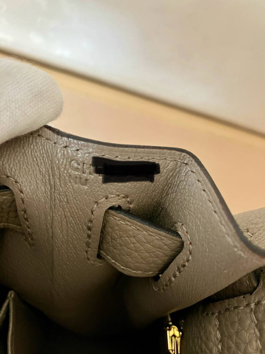 2018年製刻印Cのケリー(トゴ)です。 とても希少なカラーのグリアスファルトに豪華なゴールド金具になります。 お探しのエルメスフリークの方も多いのではないでしょうか? エトープよりも少し濃く、上品で気品のあるカラーです。落ち着いたカラーに豪華なゴールドで飽きが来なく、永くご愛用いただけると思います。 購入後10回未満の使用ですので、どこにも傷やスレはございません。 金具シールは変色を防ぐために外しておりますが、傷もありません。 付属品はフルセットです。(レインカバー・リボンあり) ご希望でしたら、購入時(国内ブティック)の領収書もコピーになりますがお付けできます。 写真掲載の容量を開けていますので、撮って欲しい箇所があればご連絡ください。