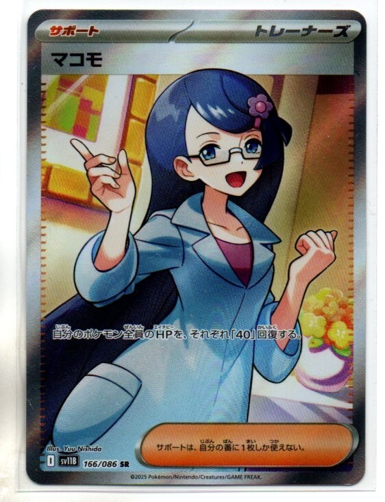 ポケモンカード sv11B ブラックボルト マコモ (SR)1枚です。カードの状態はパック開封後スリーブに入れて保管していました、未使用ですが初期傷等はご了承下さい。(カード縁切断時微キズ・製造時表面微キズ及び画面上のホロ加工切目が多く見られます。ご了承の上、ご入札願います。)