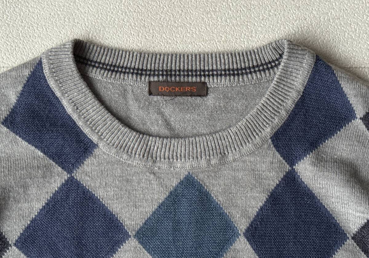 ☆送料無料☆ DOCKERS ドッカーズ USA直輸入 古着 クルーネック アーガイル柄 ニット セーター メンズ 大きめ グレー トップス 中古 即決