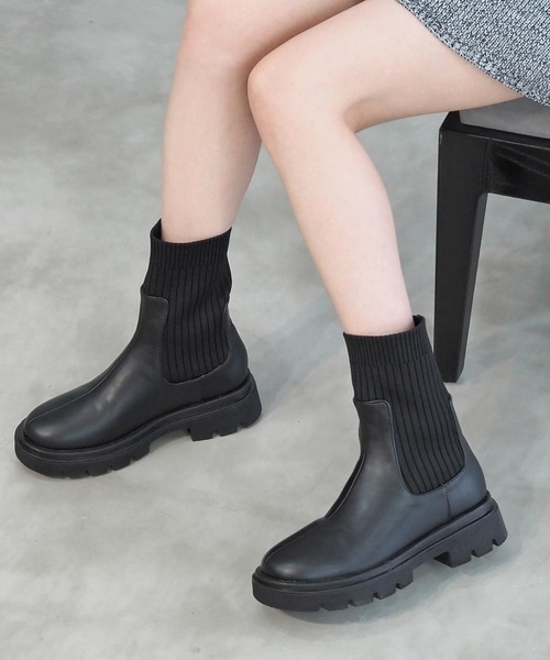 キーワード:ブーツ レディース サイドゴア ショート ヒール 厚底 秋 冬