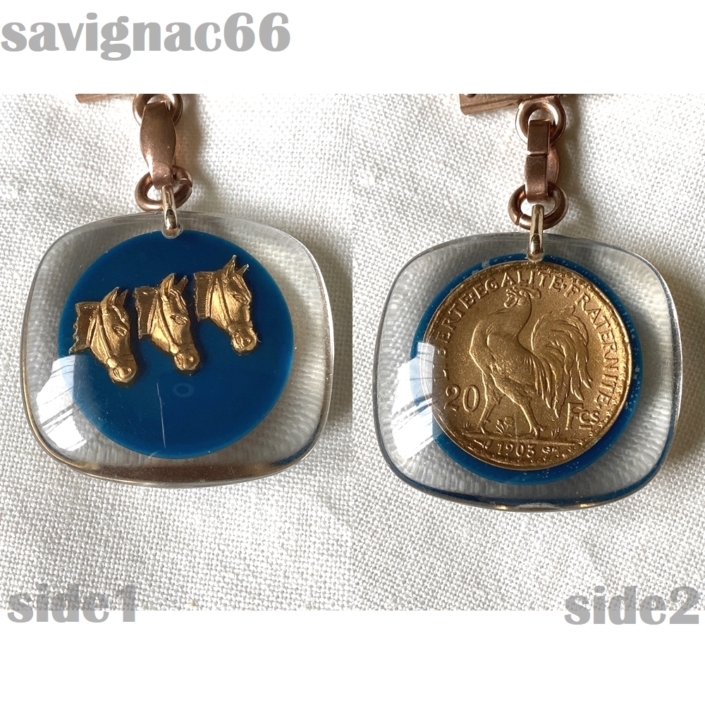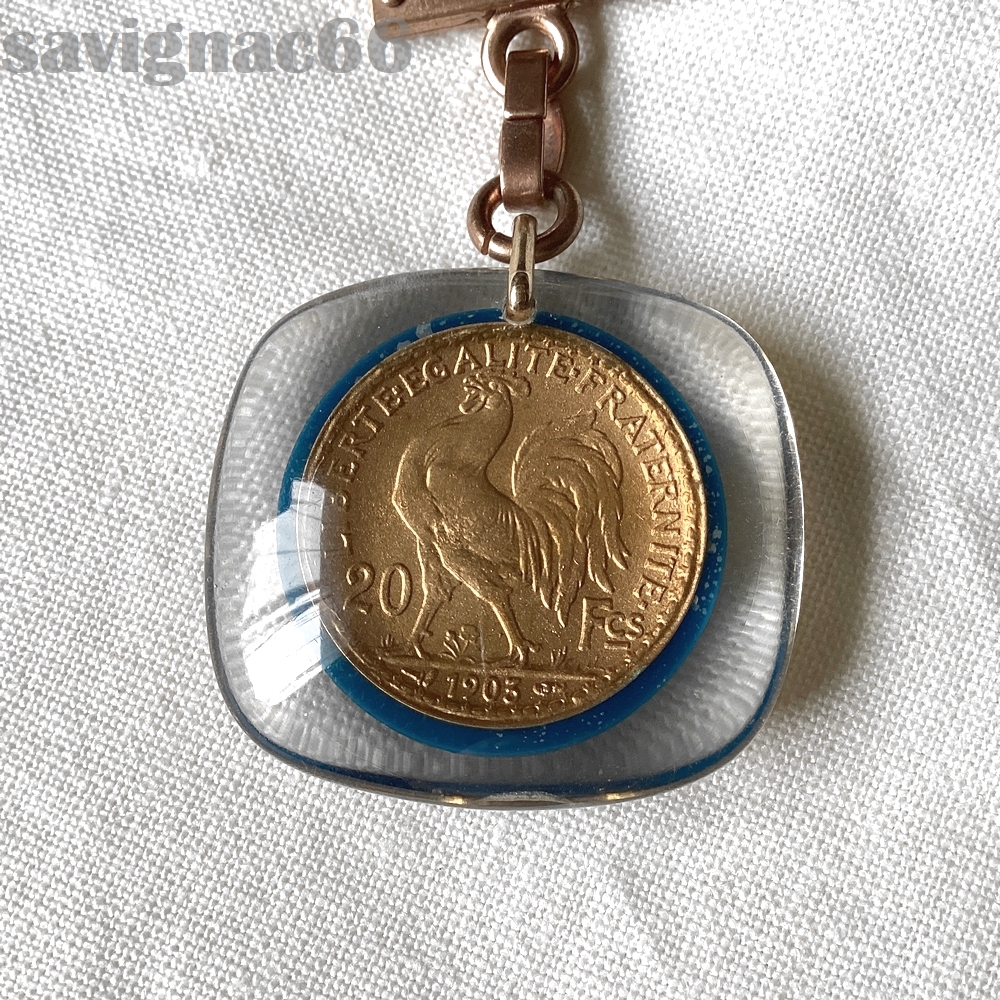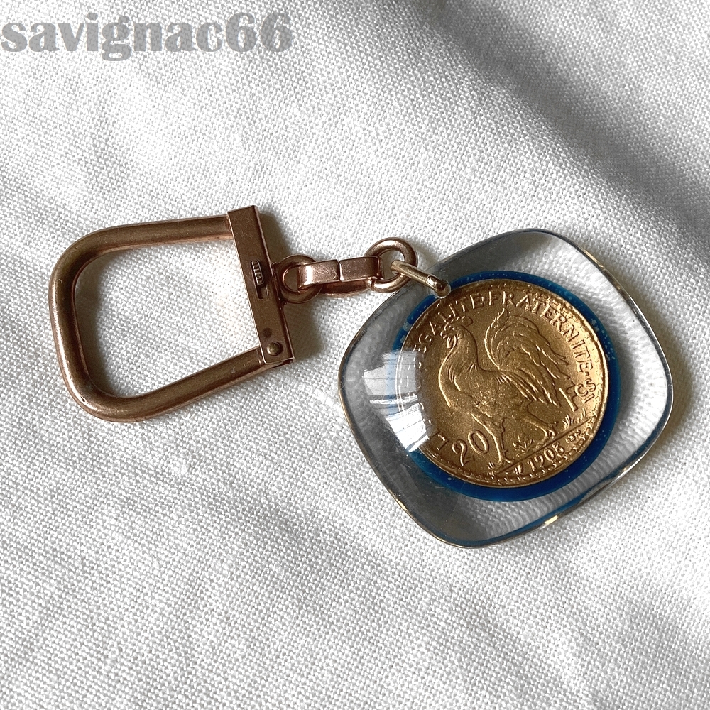 60年代 フレンチキーホルダー ブルボン TIERCE 競馬 20フラン 金貨 コイン ★ 60s vintage フランス 古銭 硬貨 アンティーク 凱旋門賞 雑貨