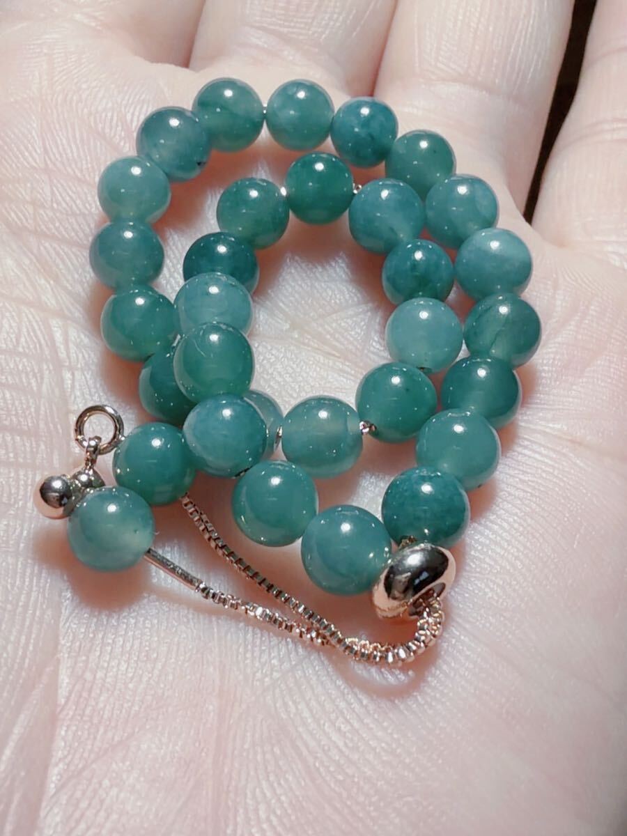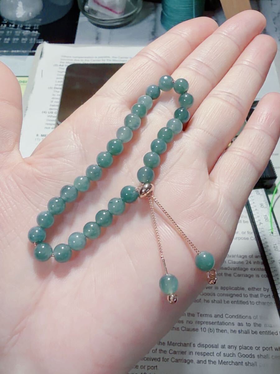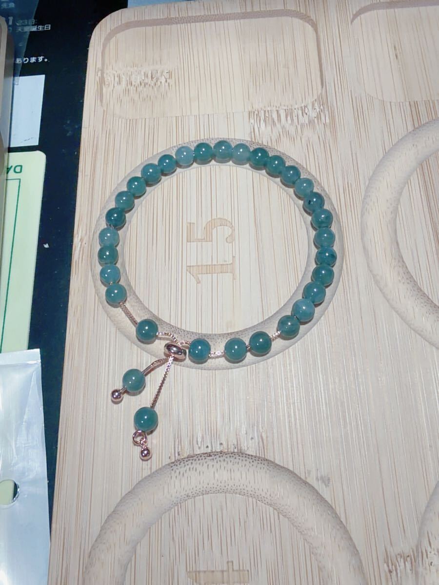 R2M-0396-1天然本翡翠《本物保証》 藍水翡翠ブレスレット14~15mm 一点物 魔除け 昇進 成功 風水 金運 財運 幸運 幸福 縁起 パワーストーン