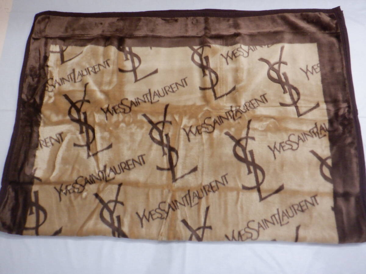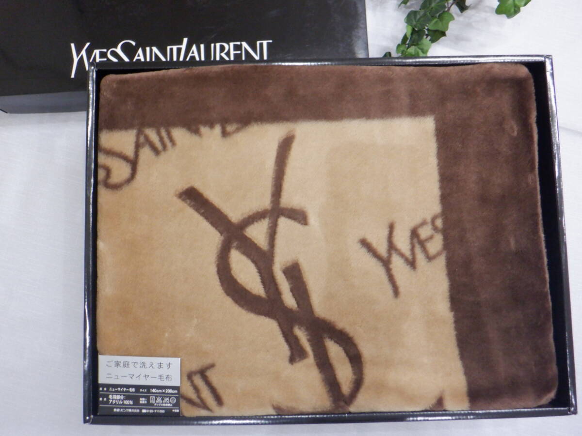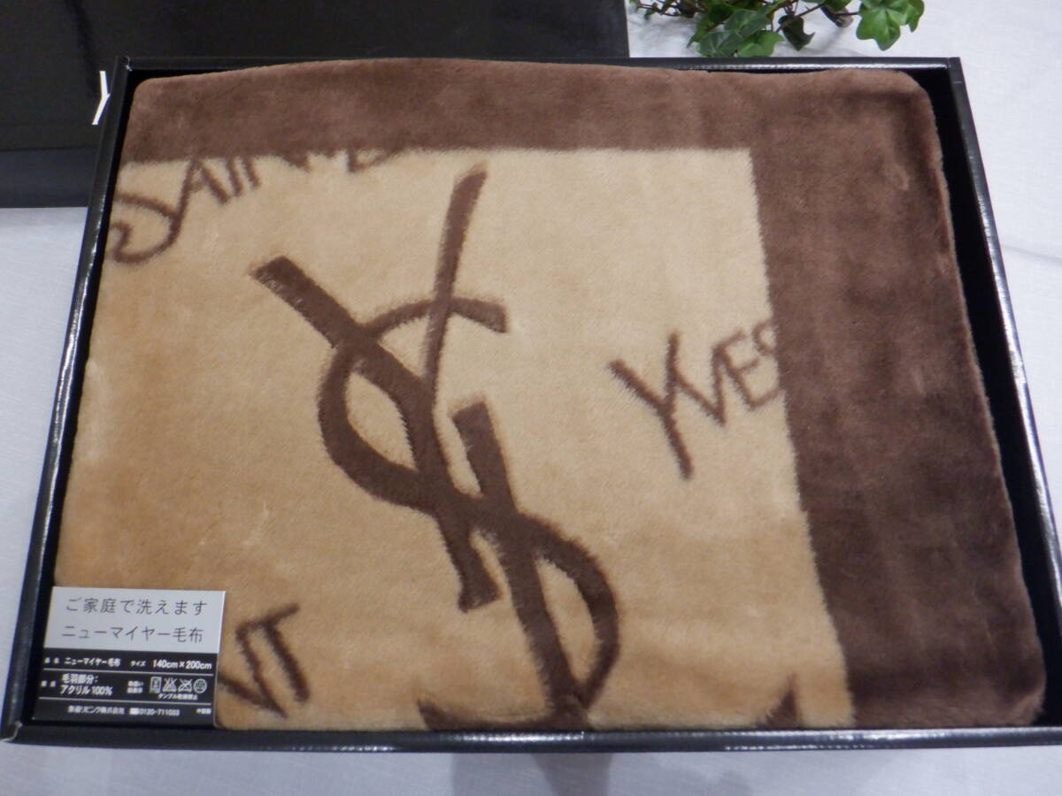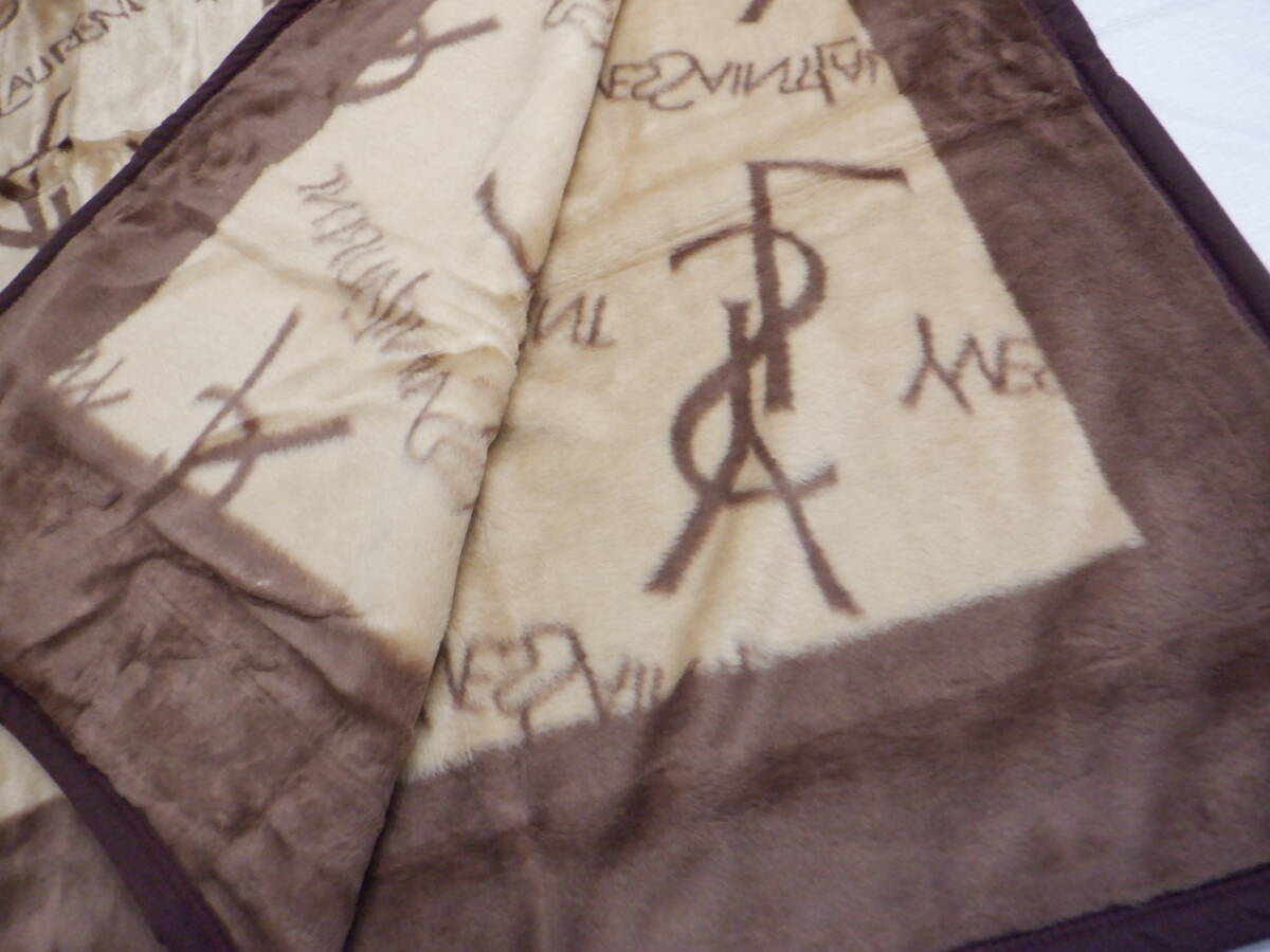 | YSL イヴ・サンローラン ニューマイヤー毛布(アクリル毛布) ブランケット YSL英字柄 茶色 シングル(140×200㎝)未使用 | ||