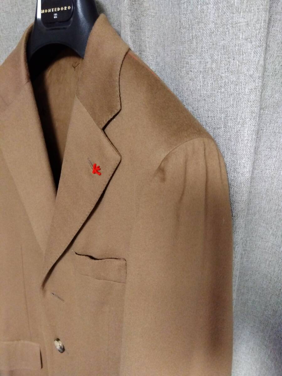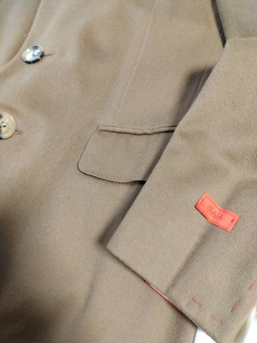 新品でしつけ糸も付いたまま、ボタンもこれからという状態ですが、数シーズン前のものなので風合いの変化はあるかもしれません。