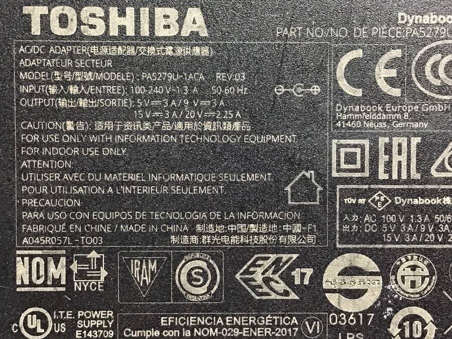 TOSHIBA PA5279U-1ACA ACアダプタ 20V 2.25A 計5個セット Type-C■一部保証品