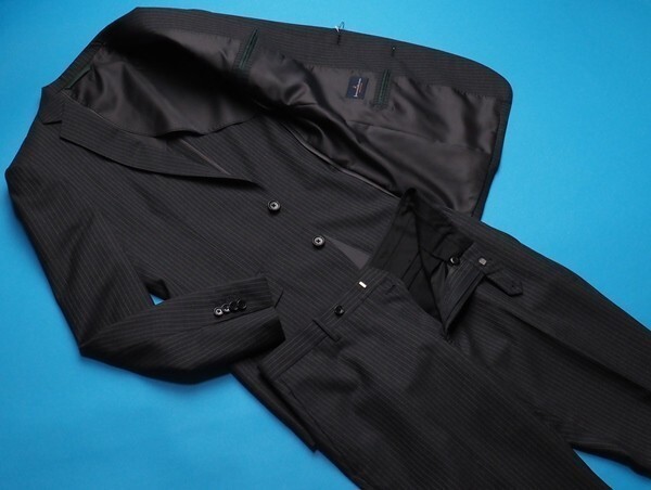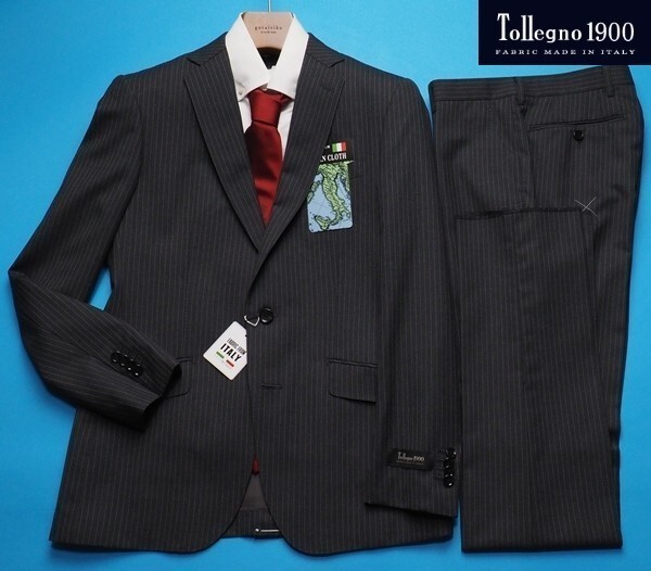 新品9.7万円 大手百貨店扱い 日本製 春夏『Tollegno トレーニョ 伊製生地』ウール100% ストライプ スーツYA4濃灰(H) 1700881