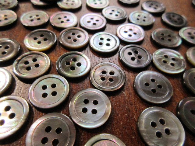 グレーの中にかすかなグリーンとほんのりピンクに輝く部分があり綺麗なボタンです。