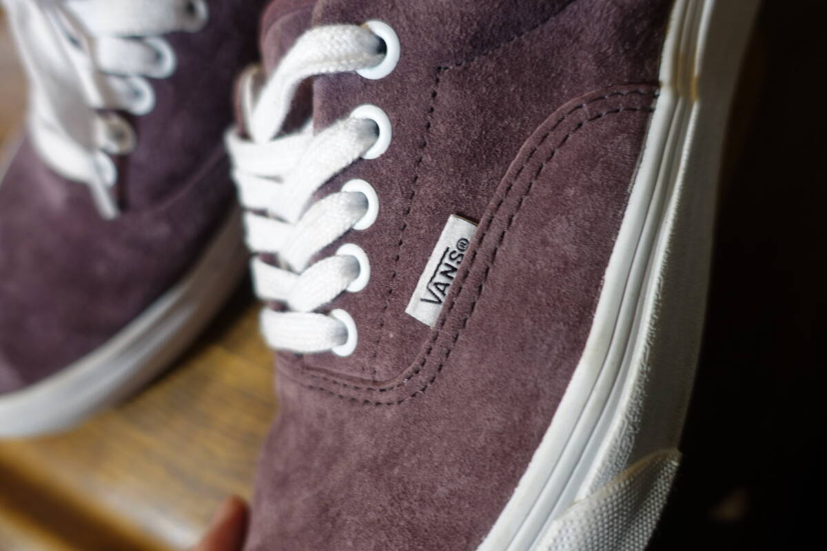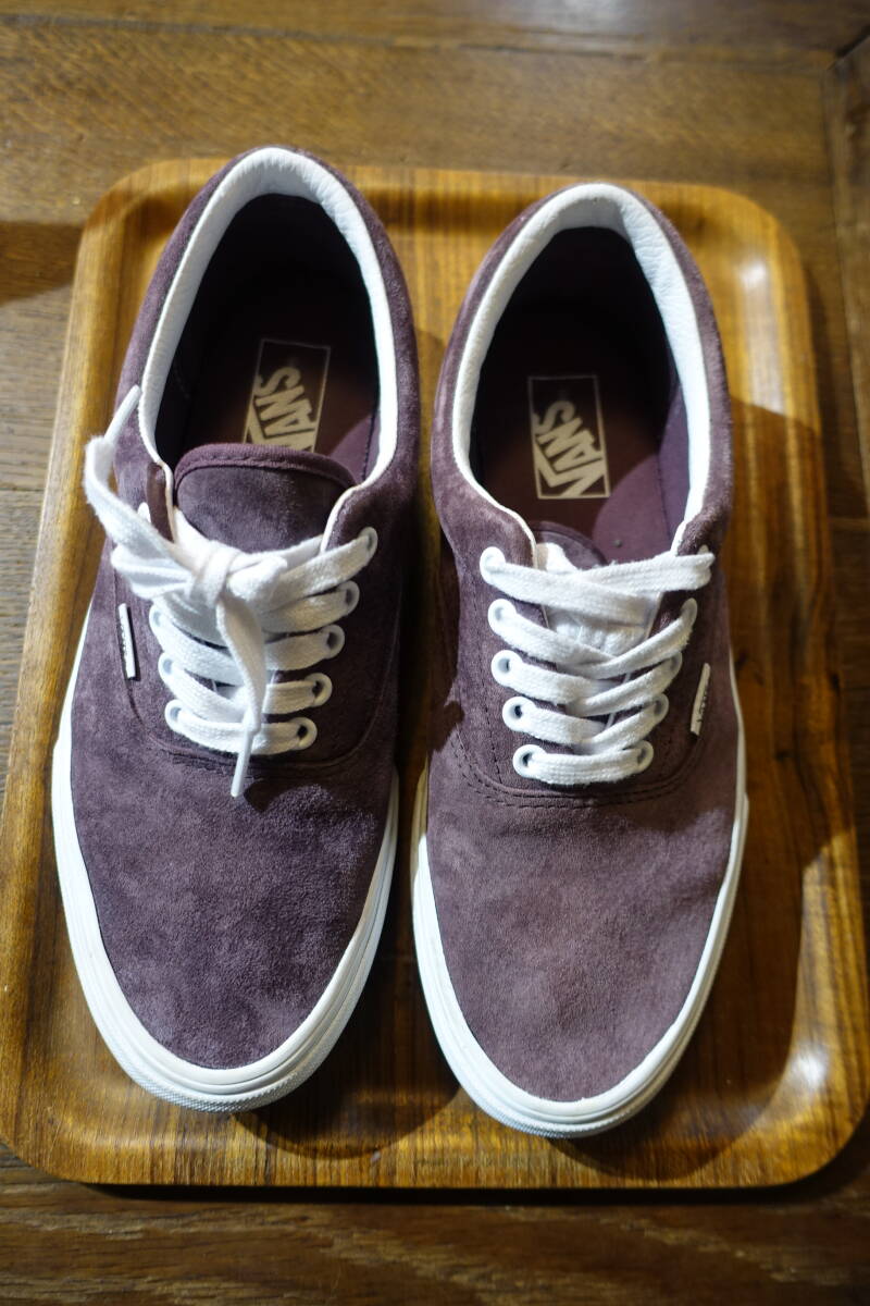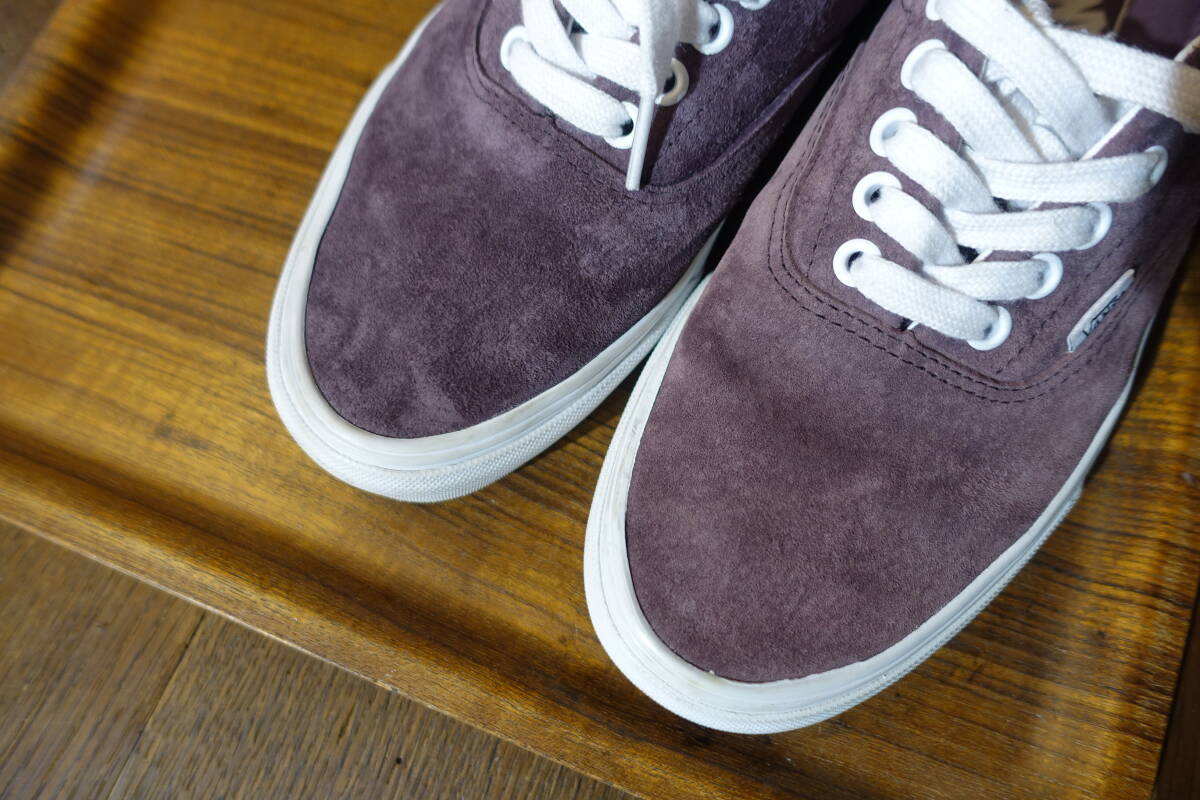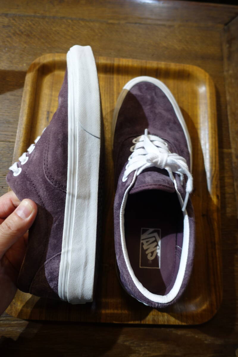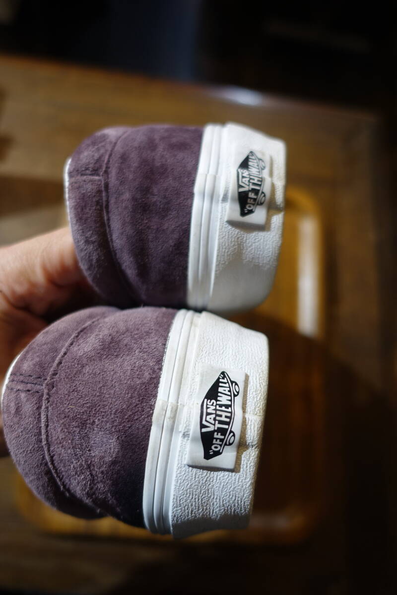 箱無しです。紫がかった茶色のような 暗い淡い紫のような そんな色で おそらくピッグレザーです。スエードです。若干使用感ありです。若干薄汚れあり。若干擦れあり。レザーに若干ムラあり。目立つダメージはありませんがご了承下さい。よろしくお願いします!