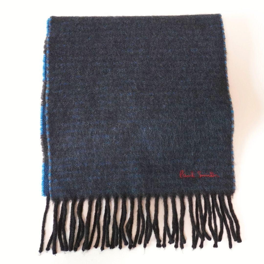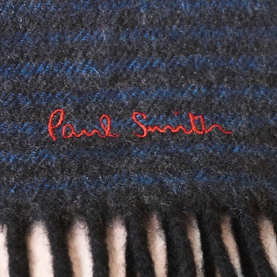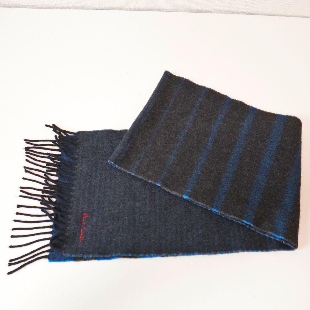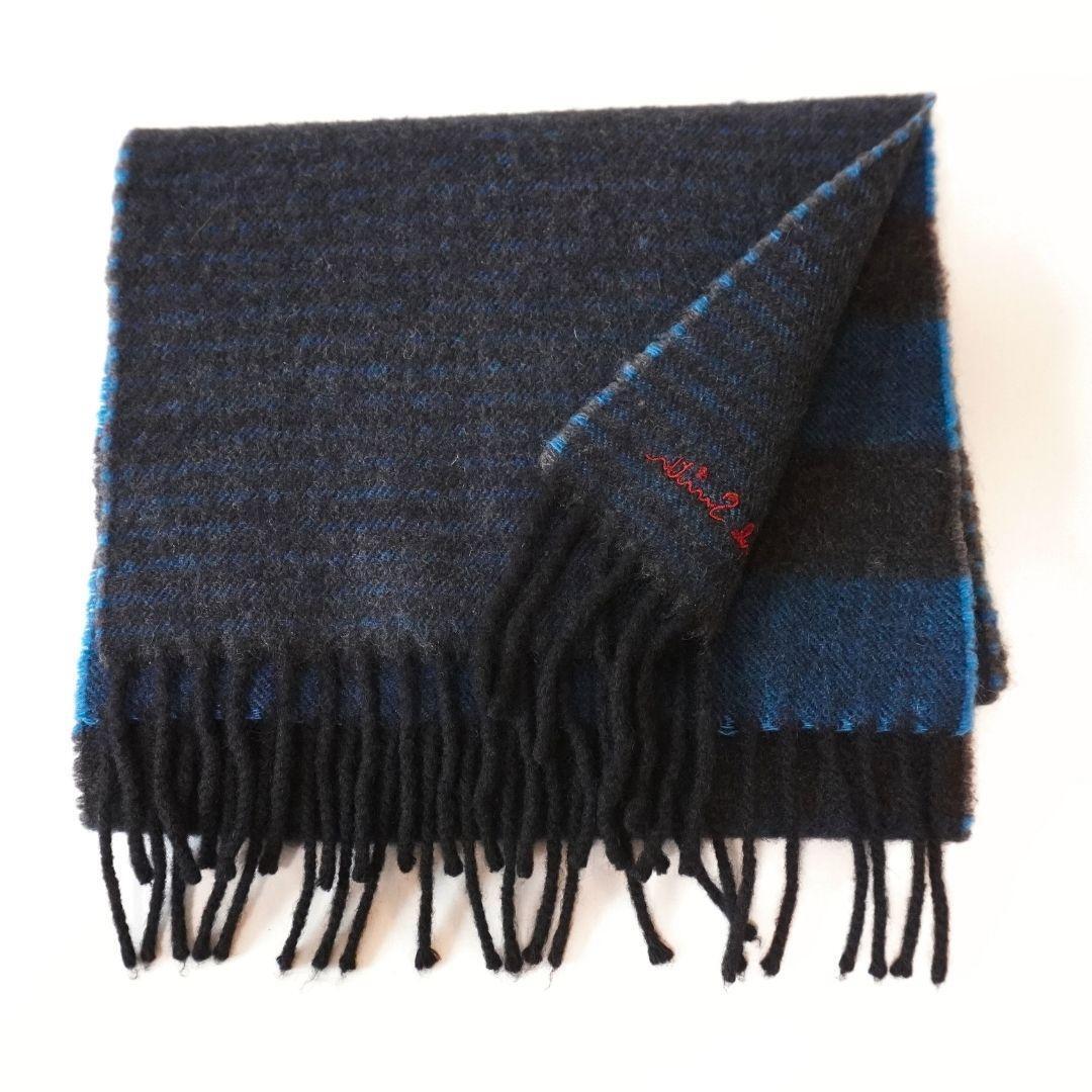 ポールスミス ボーダー ブラック×ブルー マフラー