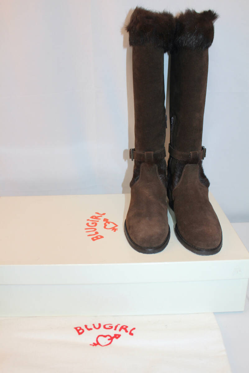 新品 BLUGIRL ブルーガール スウェードロングブーツ size36ブラウン kir