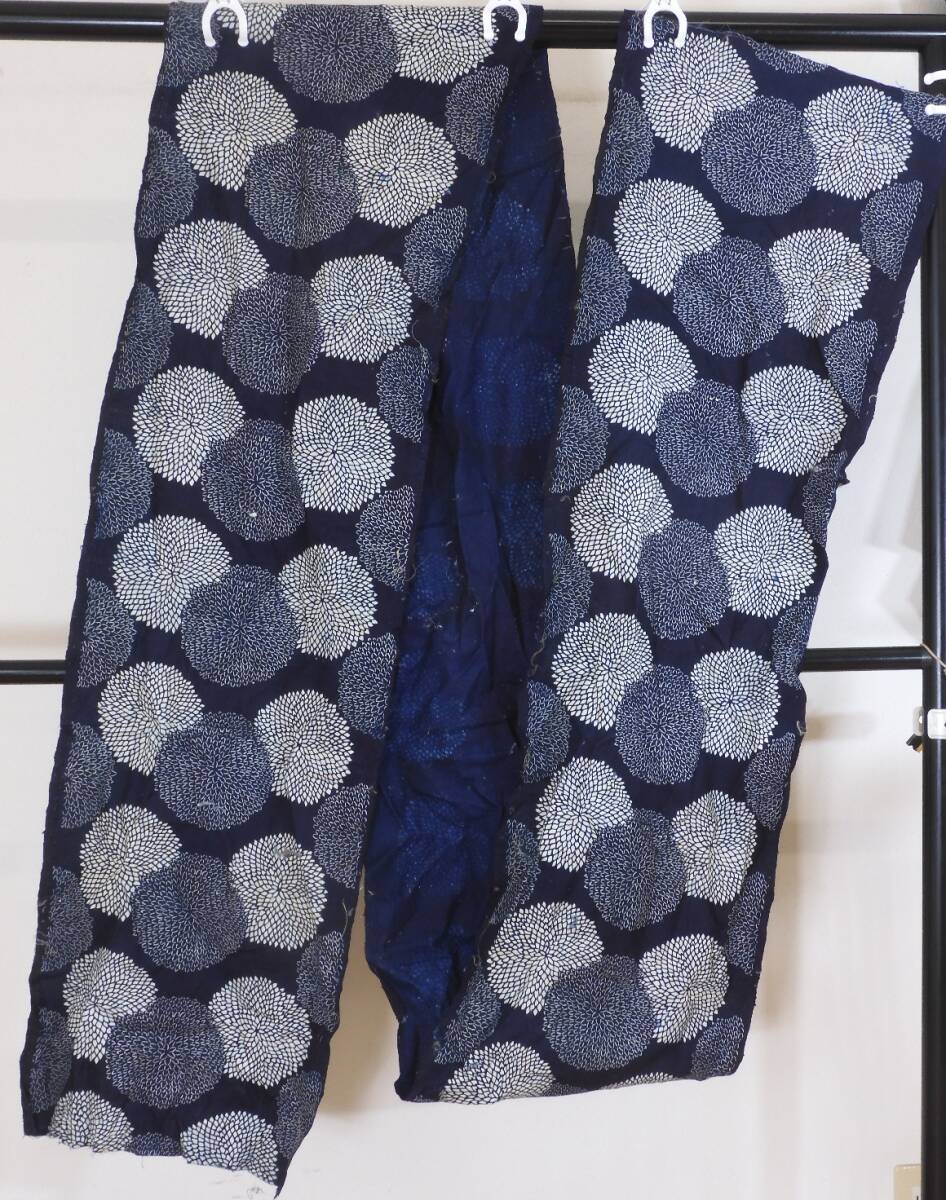 <銀の斧>木綿・明治期藍型染・長い1巾・3.6m・2巾分以上
