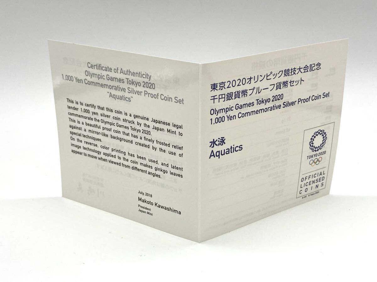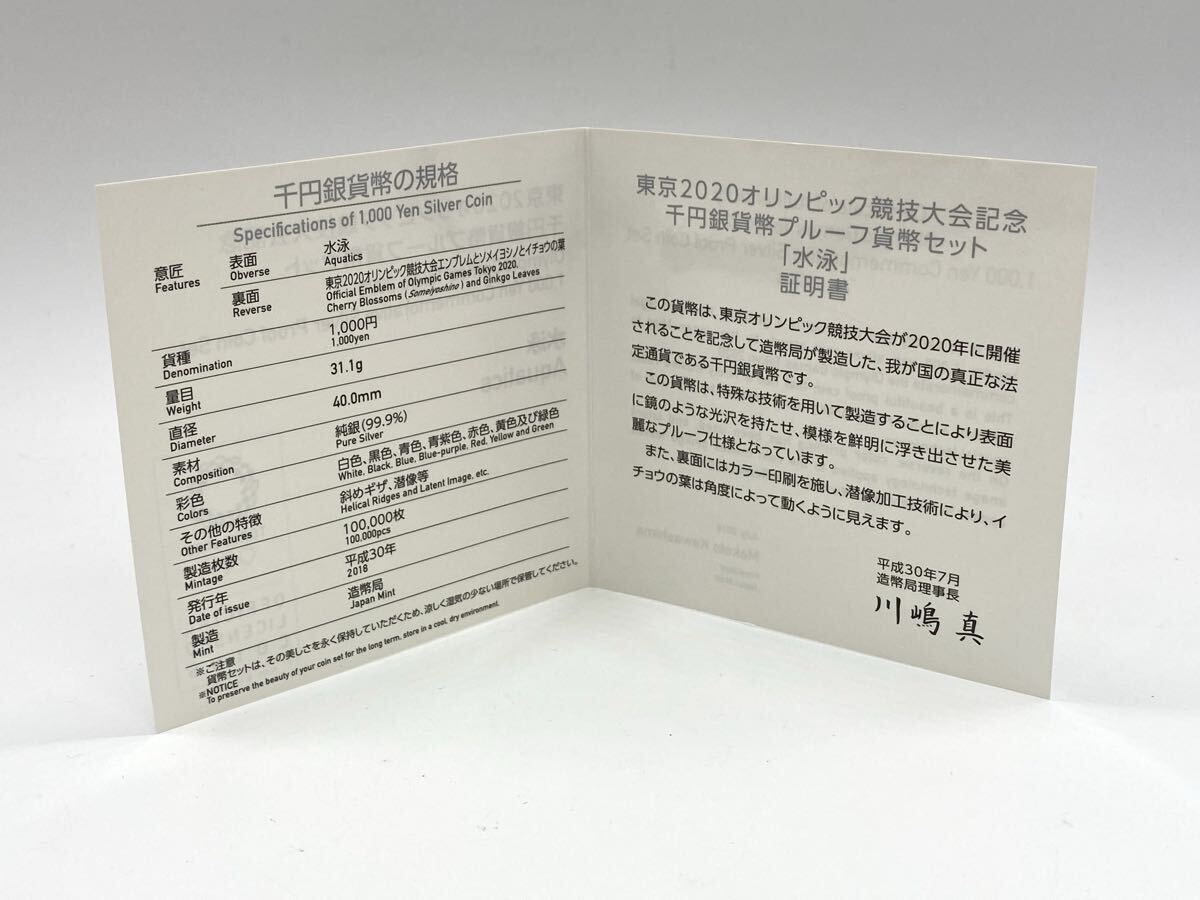 【10S48】1円スタート 2020年東京オリンピック競技大会記念貨幣 千円銀貨幣 1000円銀貨 コイン 平成30年 2018年 重量 約39.5g 水泳