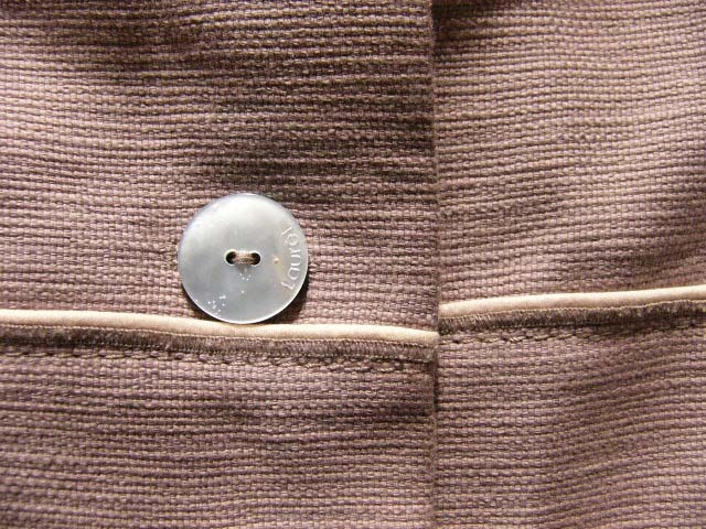 フロント3つシェルボタン、ボタンにはロゴ刻印がございます。