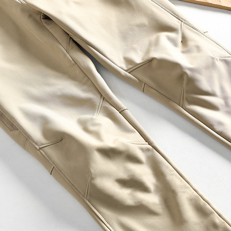 新品 ソフトシェルパンツ ウインドパンツ 厚手 アウトドアパンツ 秋冬 撥水 ミリタリーパンツ 裏起毛 メンズ スラックス カーキ T7126-XL