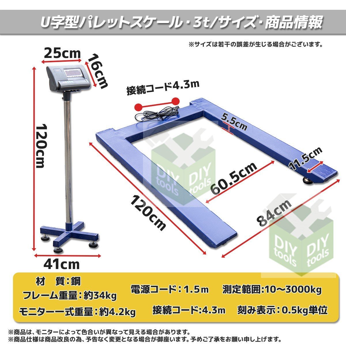 ●新品!U字型フレーム フロアスケール デジタル 3000kg 3t 秤量範囲:10kg~3000kg パレットスケール 3トン【営業店止め】