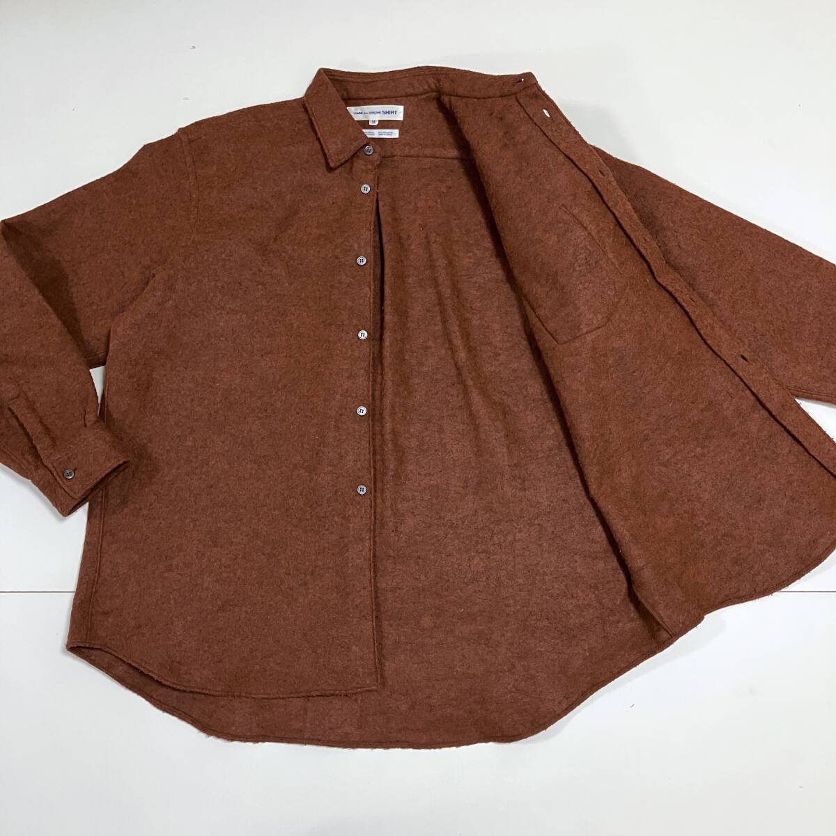 90s COMME des GARCONS SHIRT ポリ フェルト 長袖シャツ 茶系 Mサイズ コムデギャルソンシャツ archive 5030279