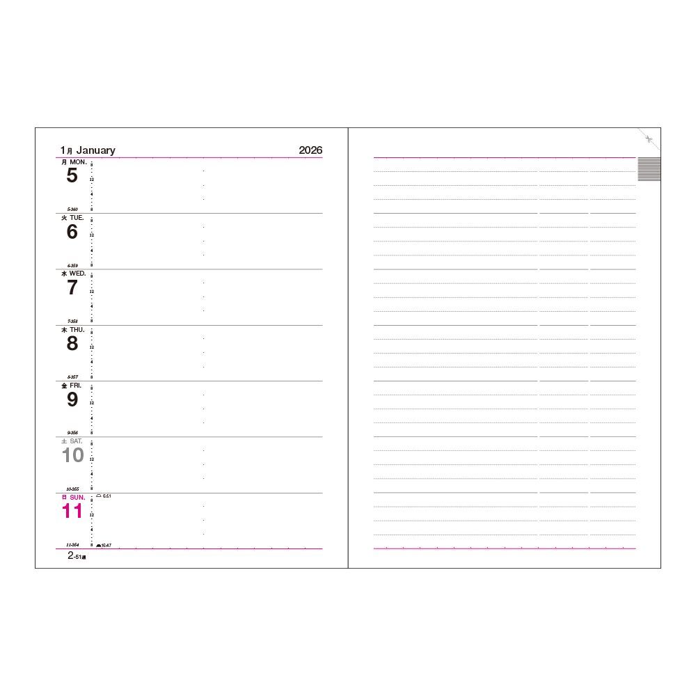 見開き1週間の余裕ある書き込みスペースは、1954年の発売以来の特徴として受け継いでいます。
