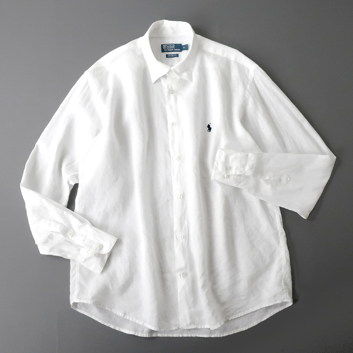 90s POLO RALPH LAUREN ラルフローレン リネンシャツ 麻100% ポニー刺繍 ホワイト XL程