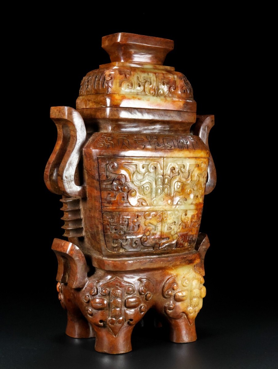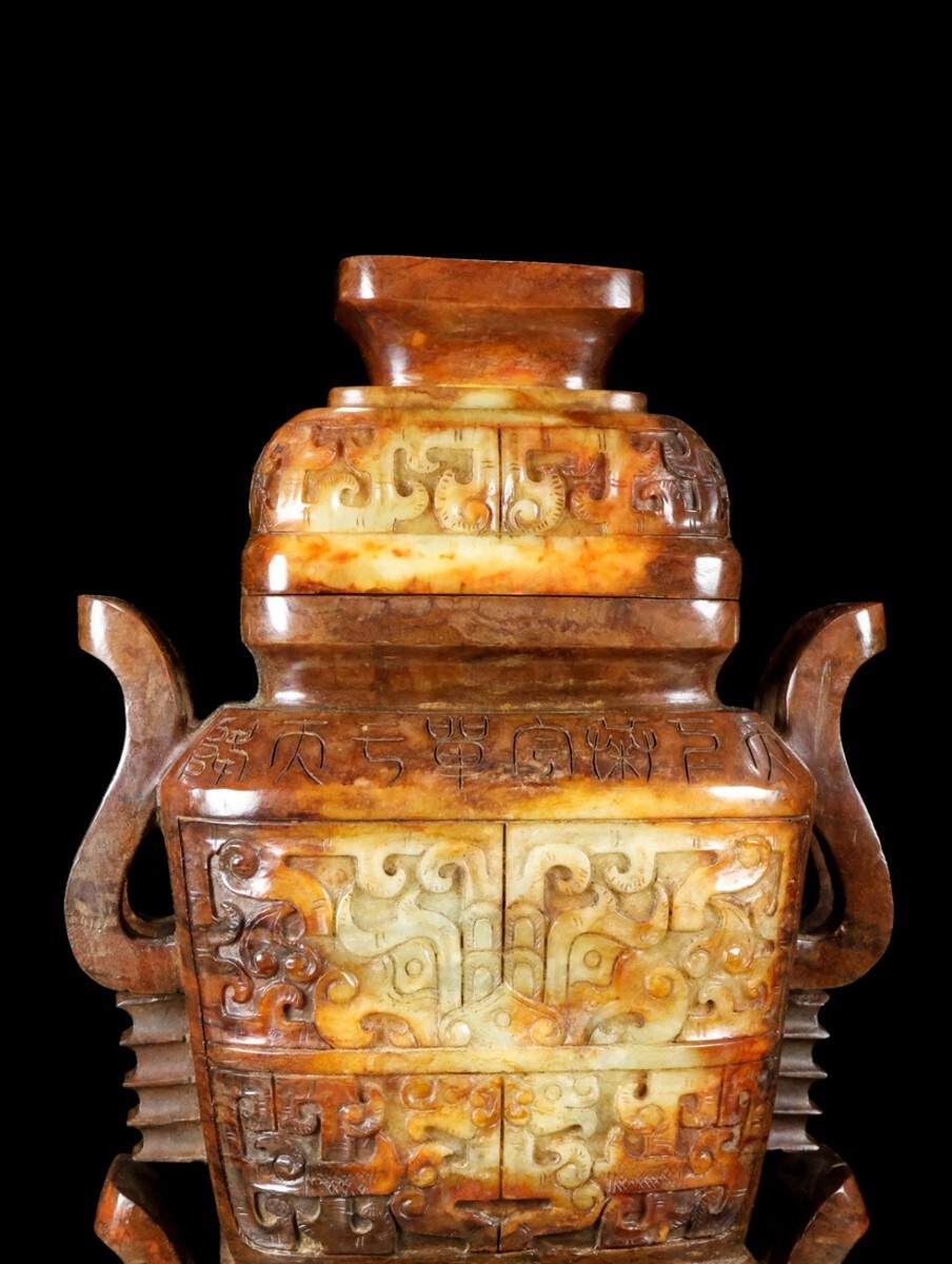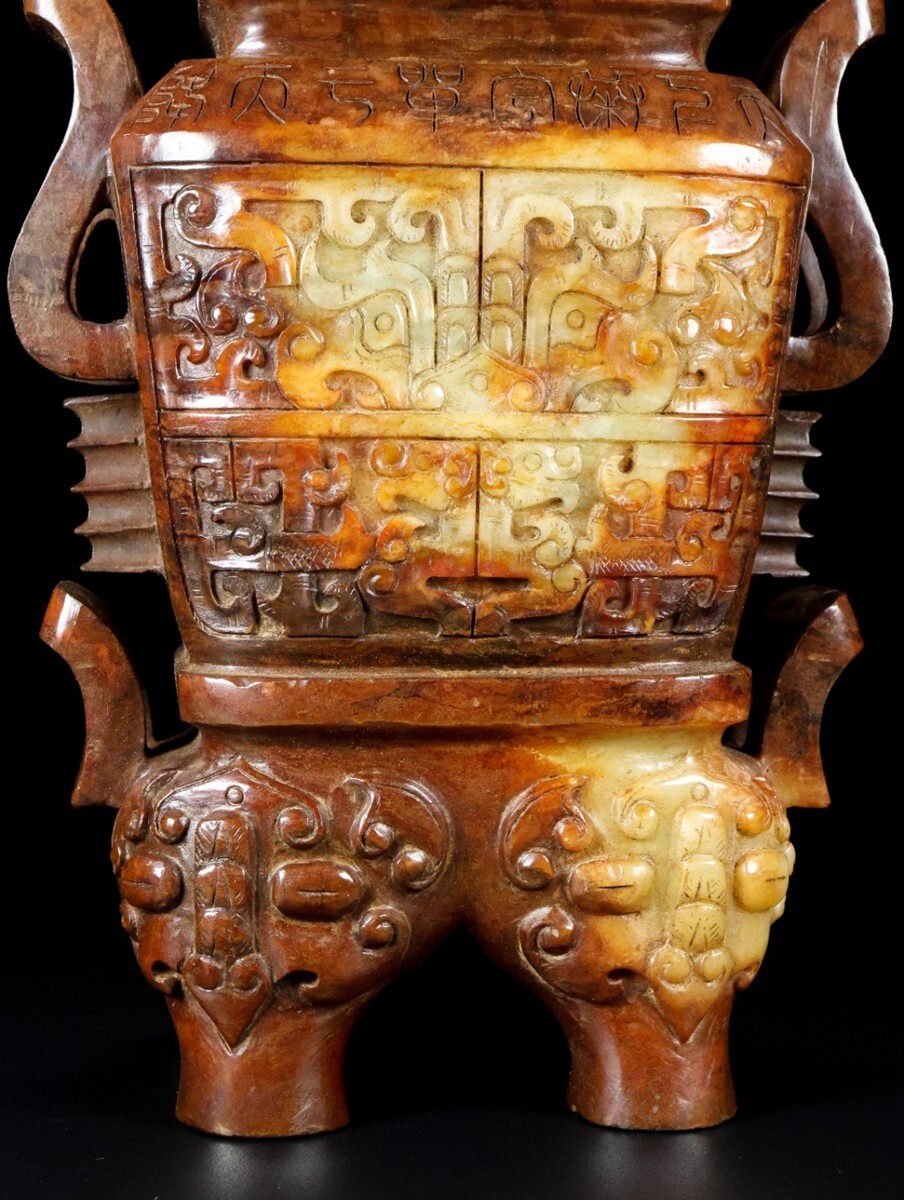 「時代物 和田玉 高古玉彫り 満工 玉瓶」極細工 擺件 中国古賞物 古美術 旧蔵出