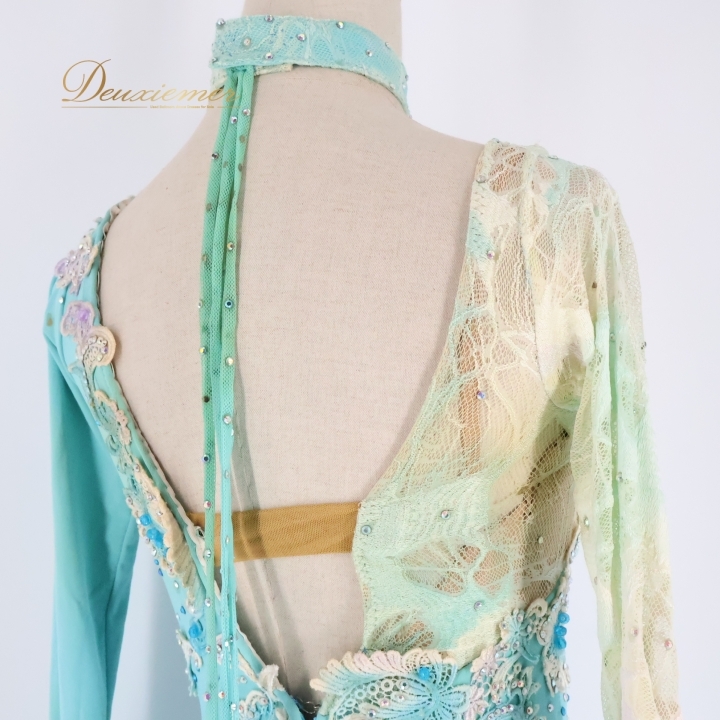| 【商品名】社交ダンス 衣装 ワンピース ドレス 【サイズ】S表記 平置き実測:総丈約110cm(裾~肩部まで)、身幅約37cm、ウエスト約27.5cm~ ※実測の為、多少の誤差はご了承ください 【仕様】 ・背面ファスナー仕様 ・レオタード無し ・伸縮性有り ・肩パッド無し ・胸パッド有り 【品質表示】 表示無し ------------------------------------ 【ポイント】 ▽優しい水色がさわやかな色味 ▽レースがかわいいデザイン ------------------------------------ 【撮影時使用トルソー】 種 類:女性用トルソー7号 サイズ:肩先~床約135cm(身長約160cm)、肩幅約37cm、バスト約83cm、ウエスト約60cm、ヒップ約81cm |