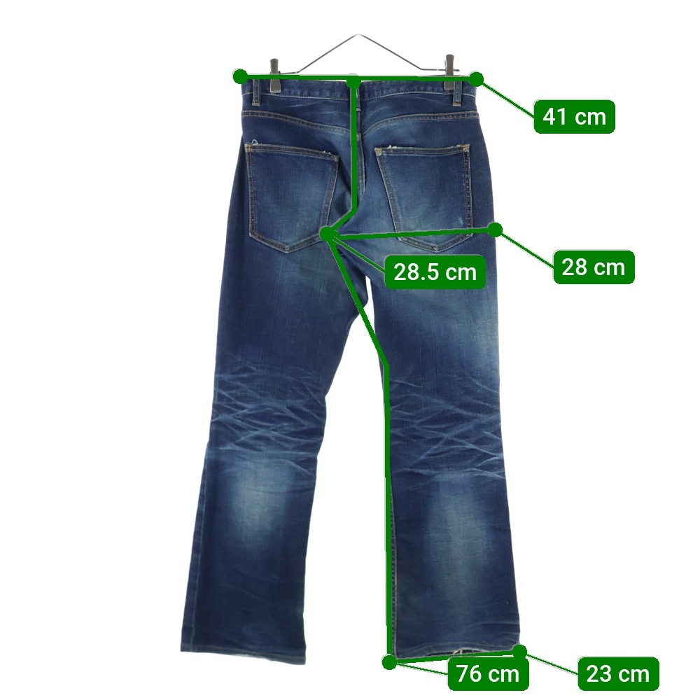 実寸 ウエスト:41センチ ワタリ:28センチ 股上:28.5センチ 股下:76センチ 裾幅:23センチ