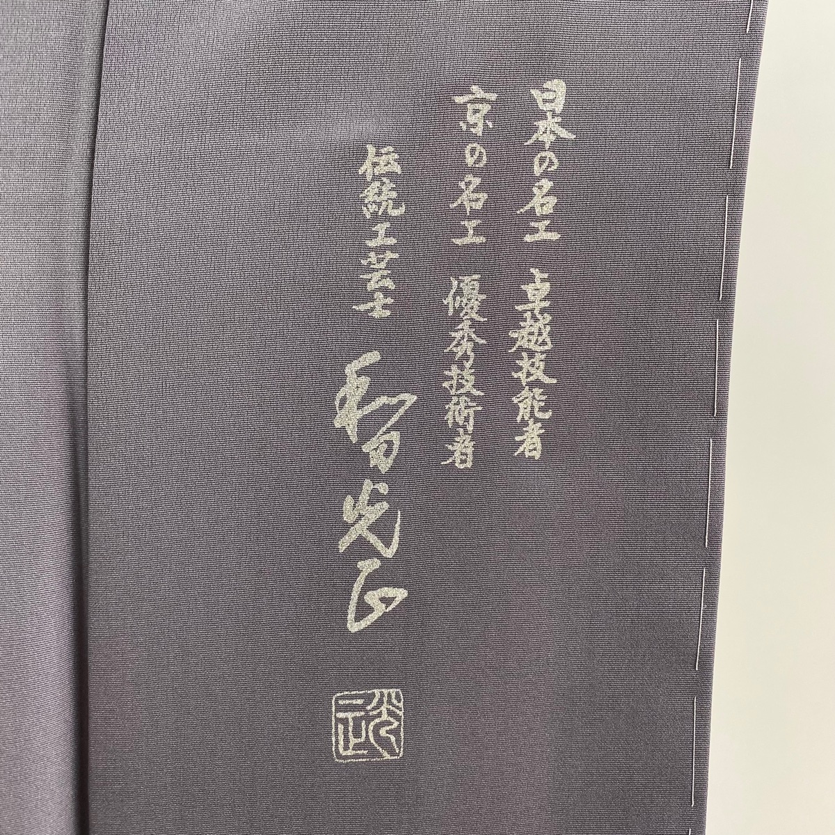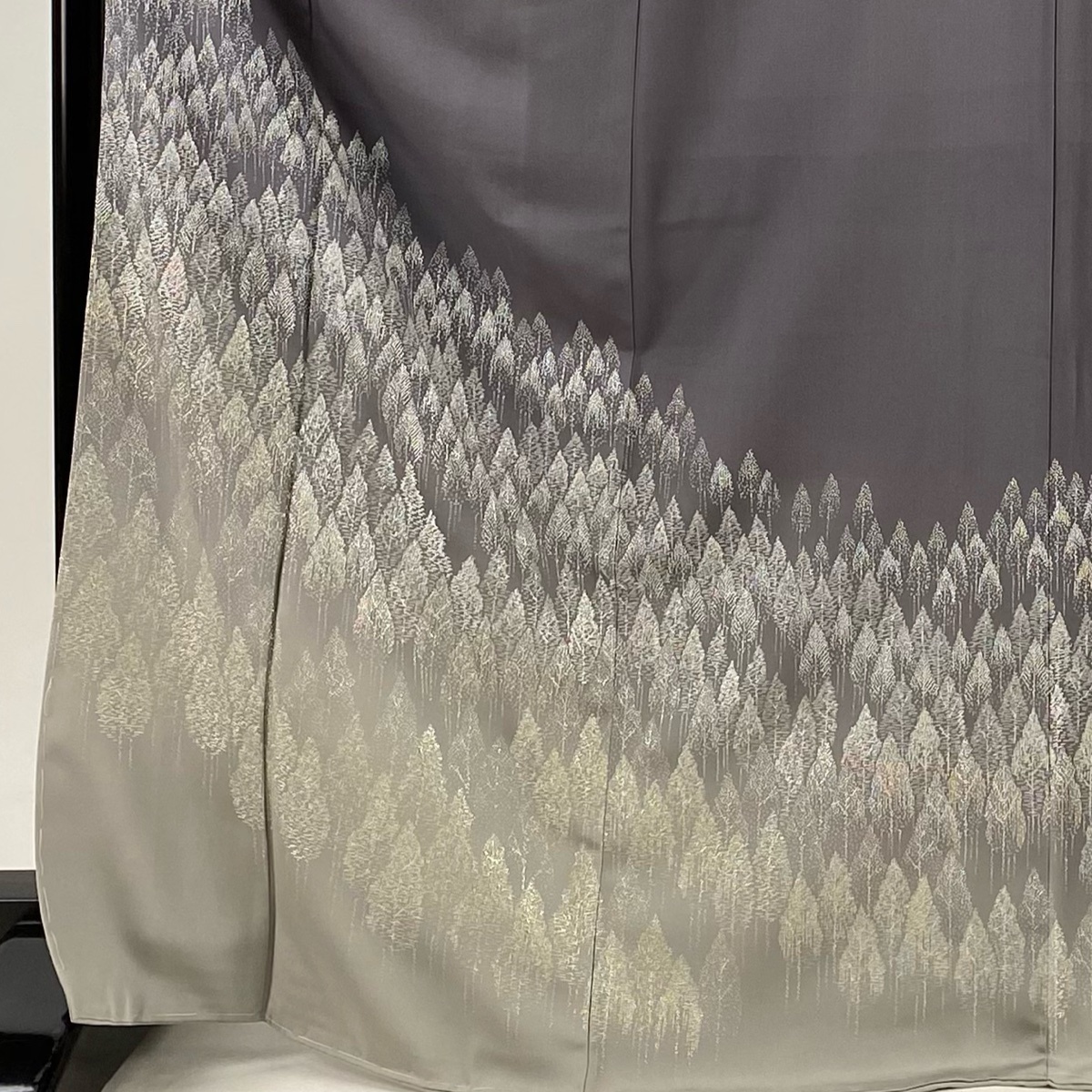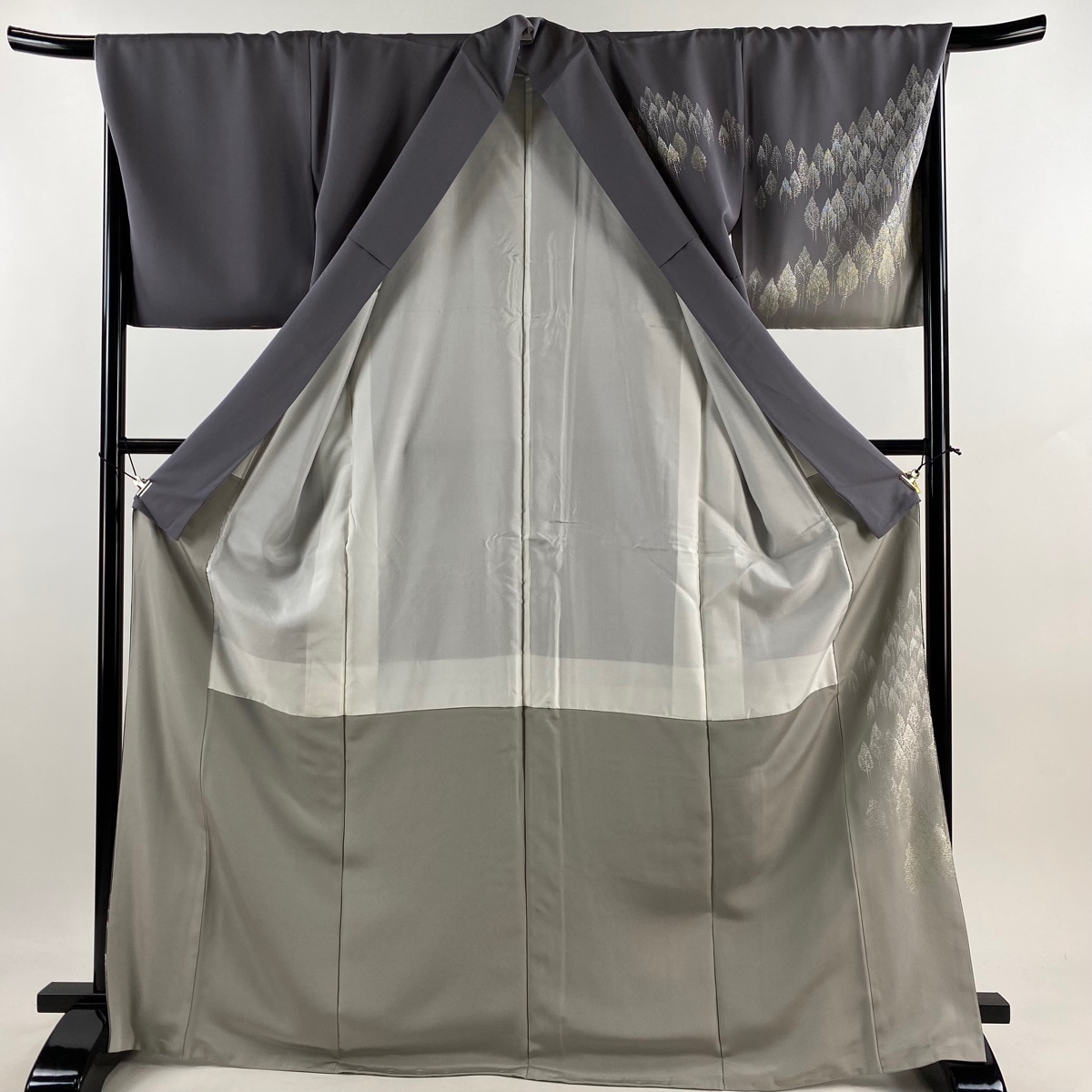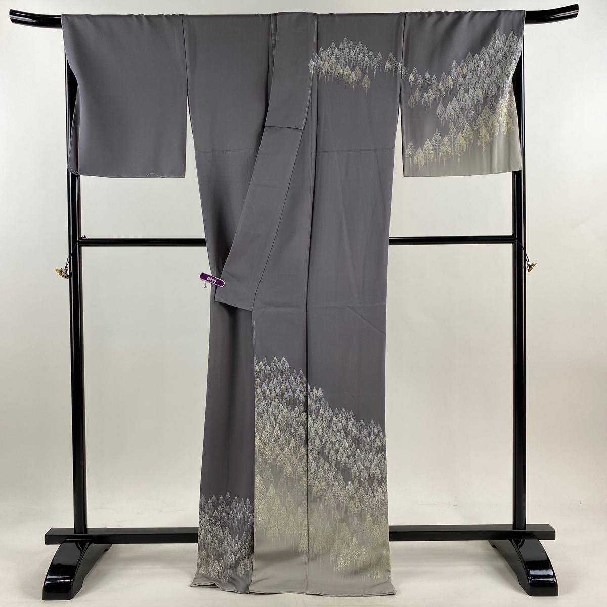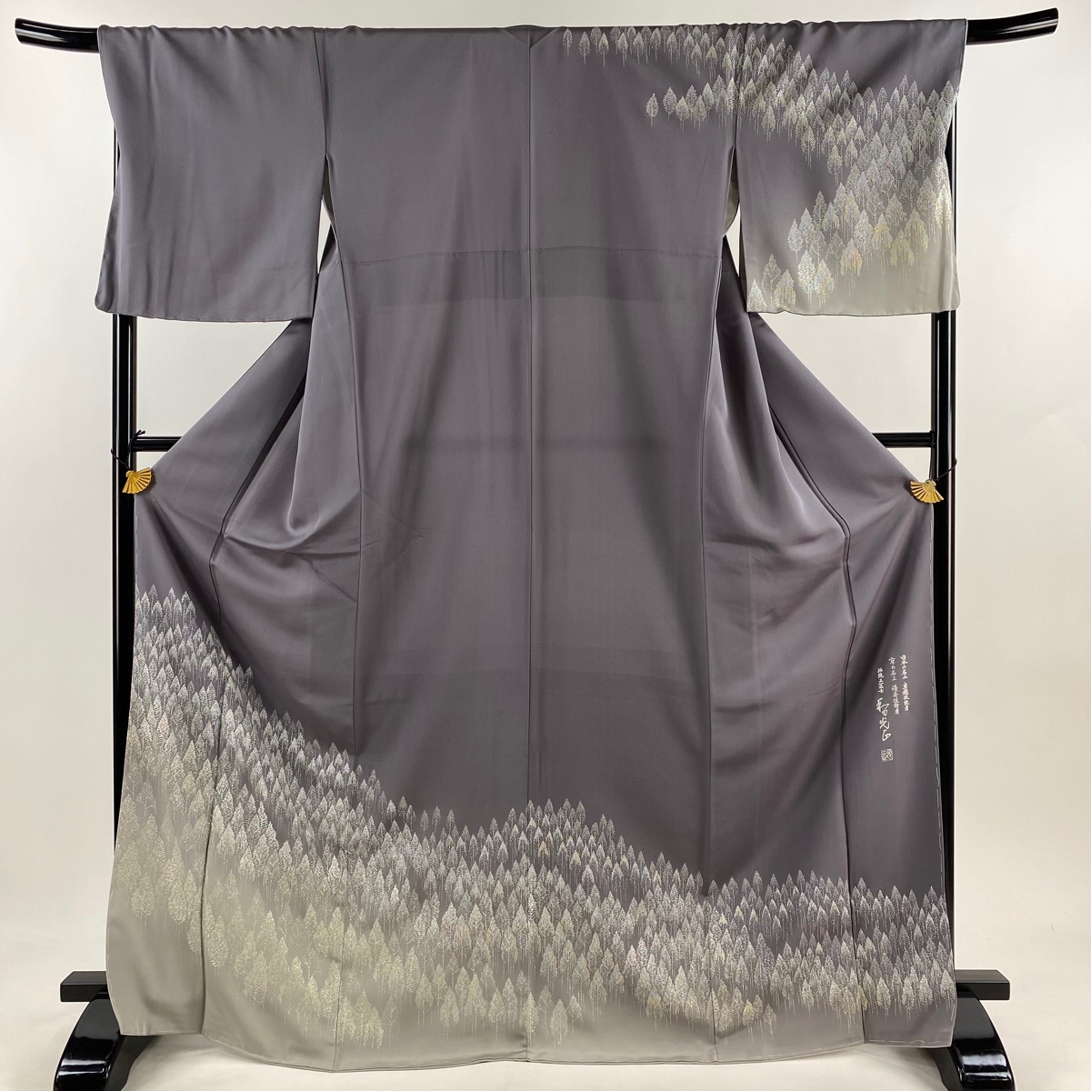 | 訪問着 逸品 和田光正 落款 樹木 銀彩 ぼかし 灰色 袷 身丈170.5 裄丈69.5 L 正絹 【中古】 |