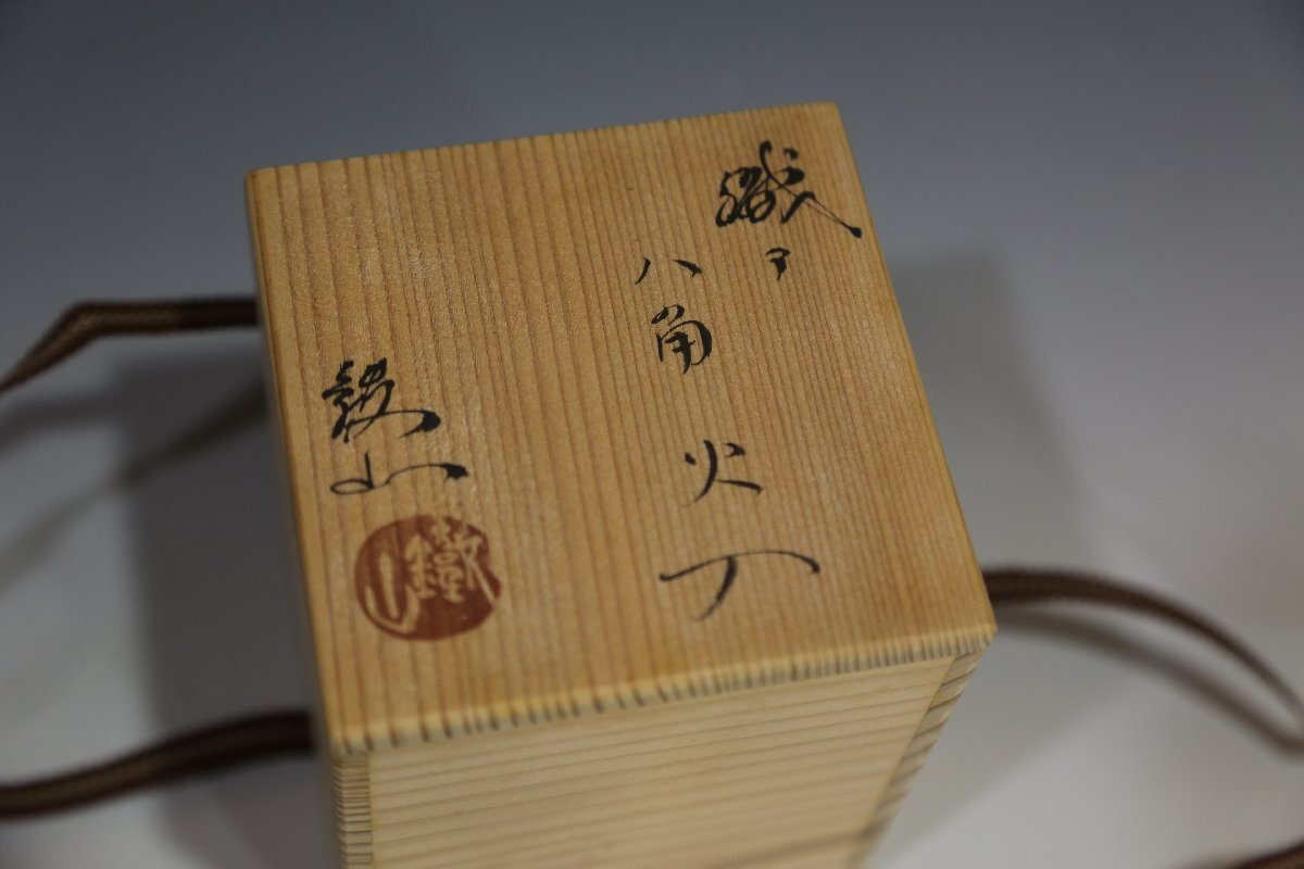 ★★★ 未使用 織部焼 松本鐵山造 八角 火入れ ★★★