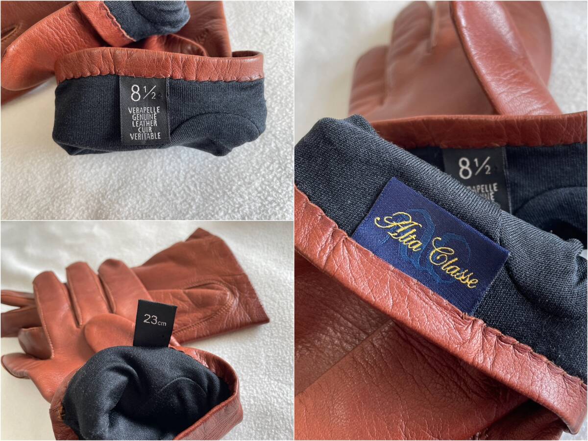 Alta Classe CAPRI GUANTI アルタクラッセ カプリガンティ 手袋 ブラウン サイズ8 1/2 23cm 本革 防寒