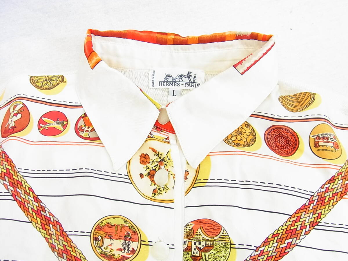 | エルメスのシルク&カシミア切り替え長袖ポロシャツ使用品です。 サイズはL、着丈68cm・肩幅43cm・袖丈56cm・身幅52cmになります。 素材はシルクとコットン85%・カシミア15%、状態は特に難も無く着用に問題ございません。 この機会に是非どうぞ☆ 商品管理番号(26252) 10-49 | |
