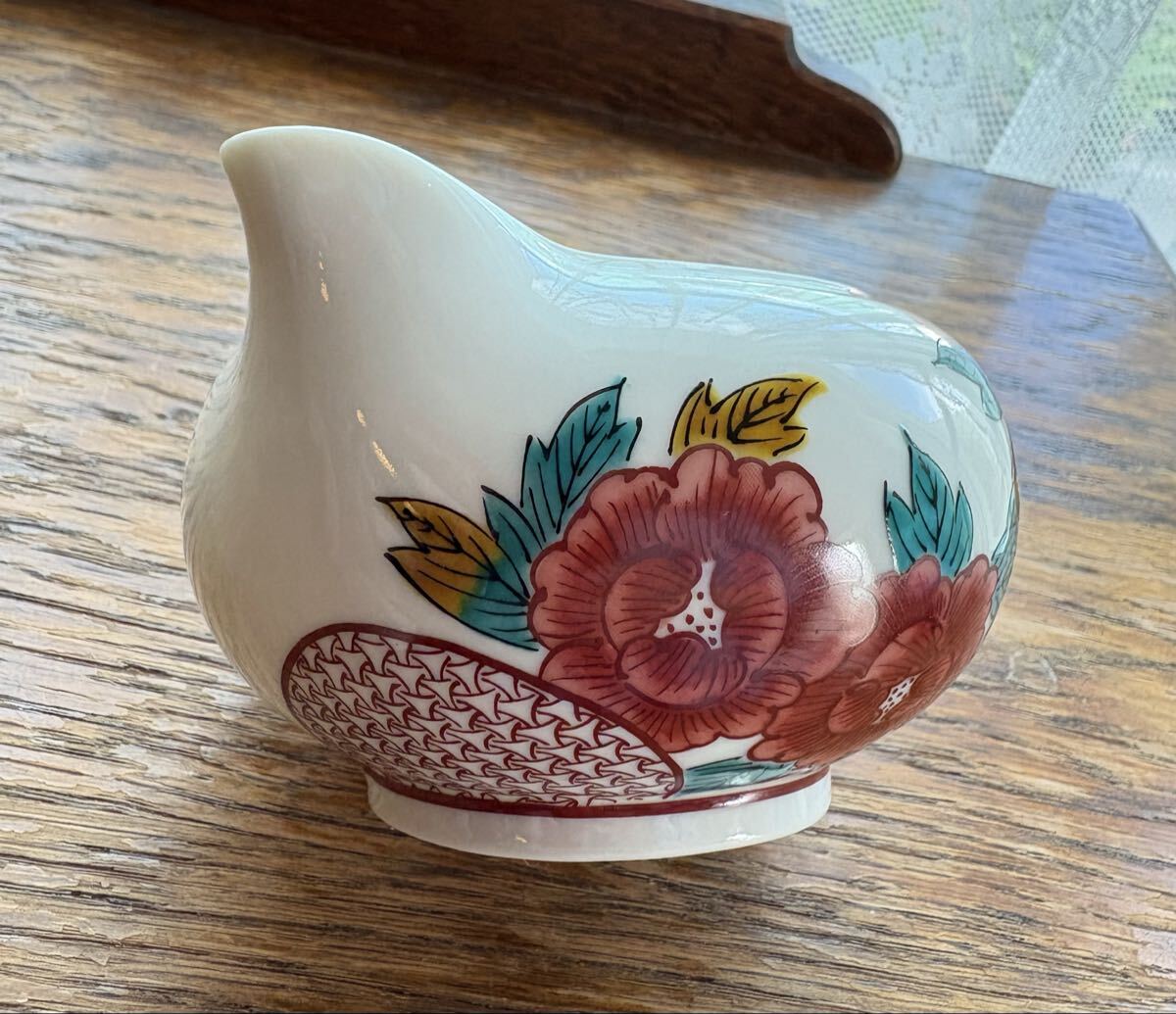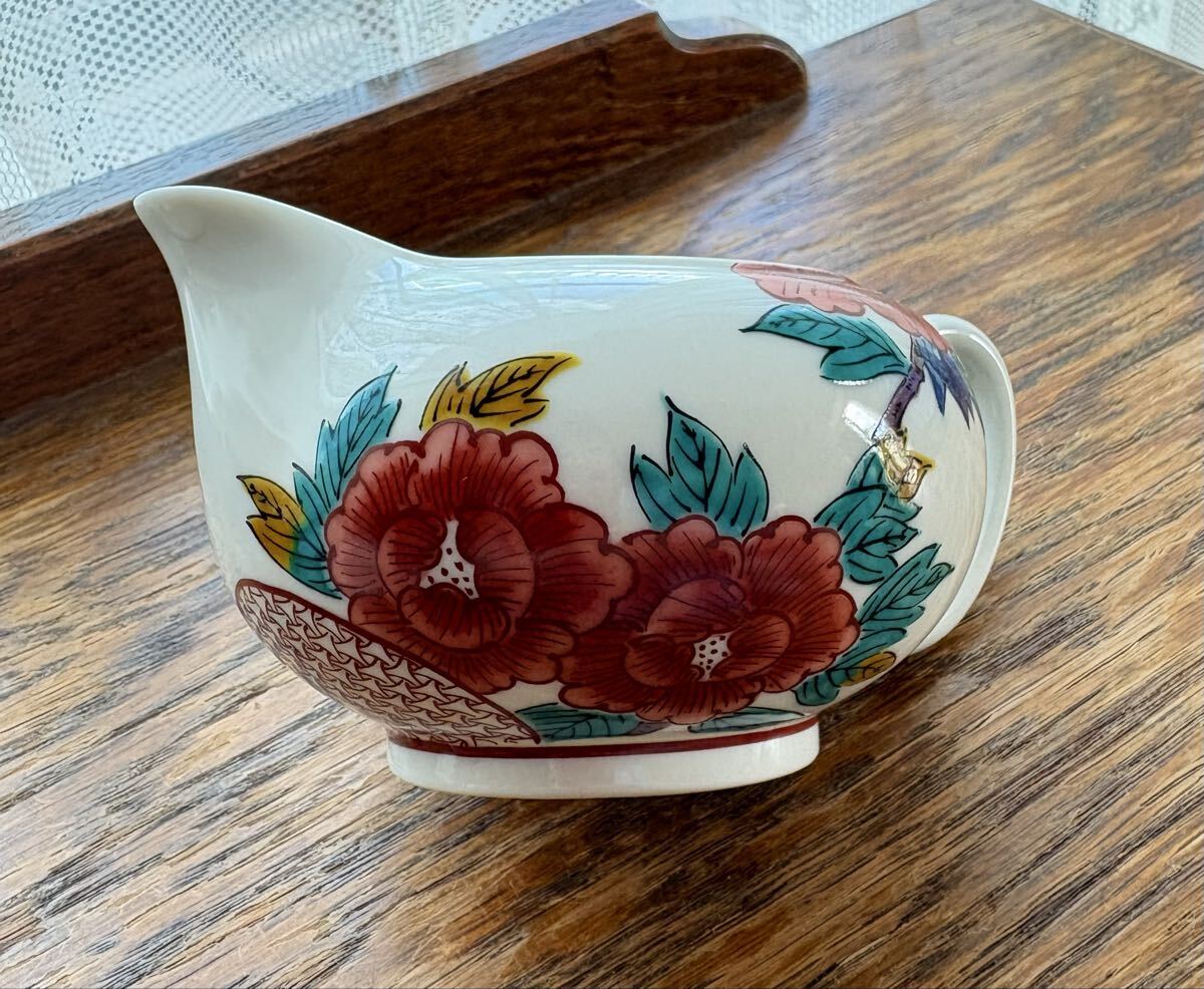 九谷焼 ミルクピッチャー 角福 浅蔵五十吉指導 牡丹紋 鳥 和風のミルクピッチャー 汁次 未使用自宅保管品