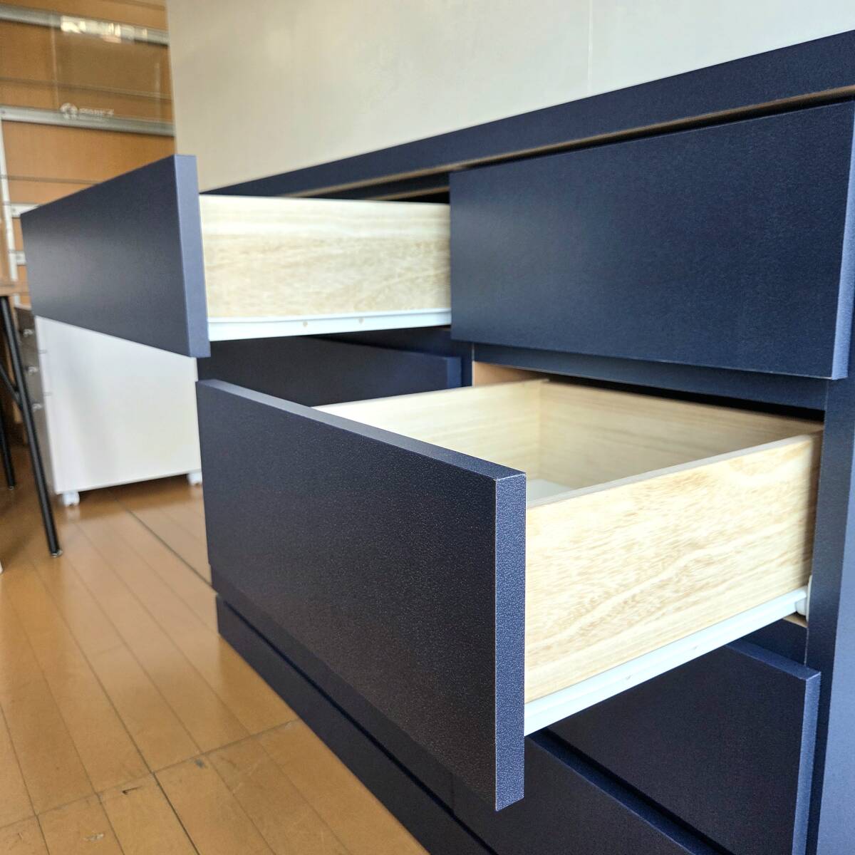 未使用訳あり 全段スライドレール付き ネイビー チェスト 幅119.5 4段 タンス たんす 洋服タンス ロータイプ 引出し 濃紺 青 ブルー