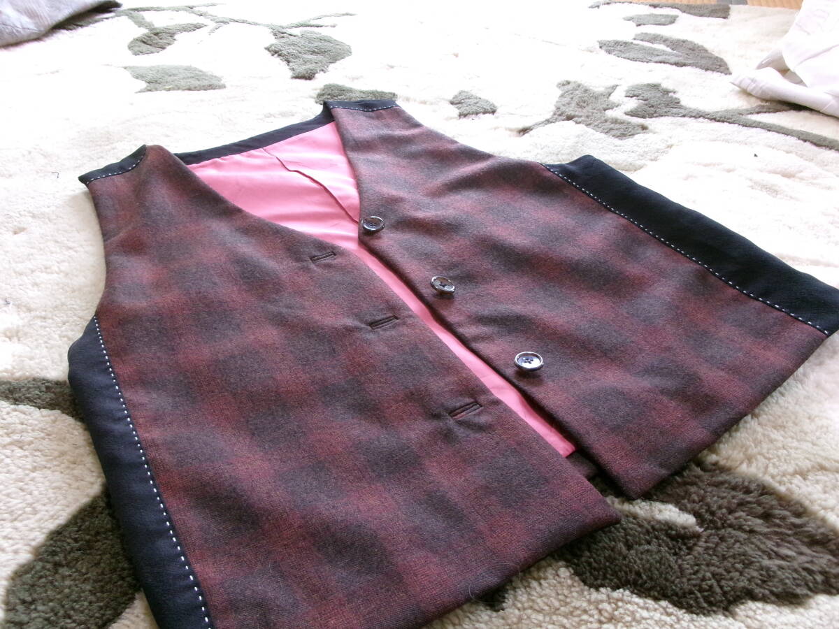今回は、正絹の着物地、ウール地とで裏付きのベストを作りました。