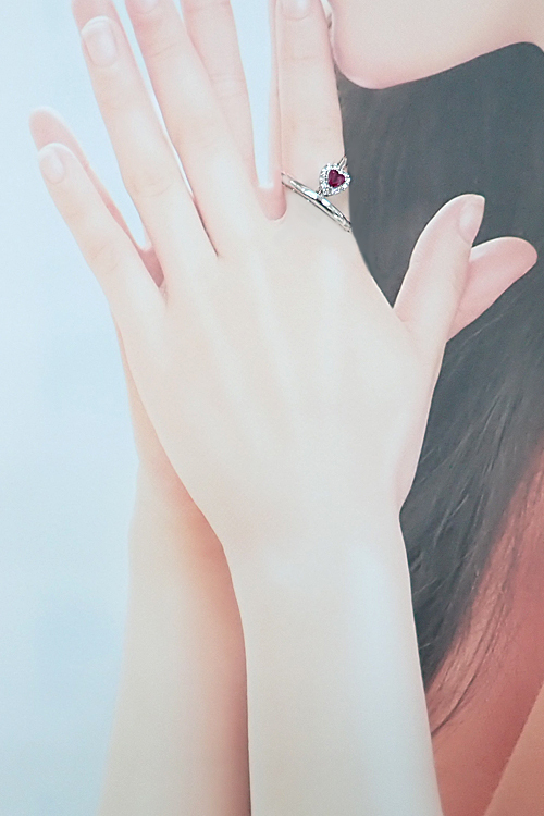コメントカラッチの、艶やかな色合いのハートシェイプのルビーが上品なリングです。ユニークなデザインなので、甘くなりすぎずカジュアルにもお召しいただけます。
