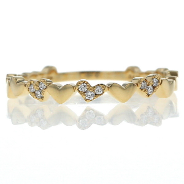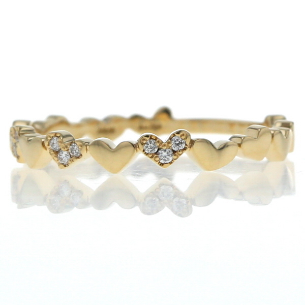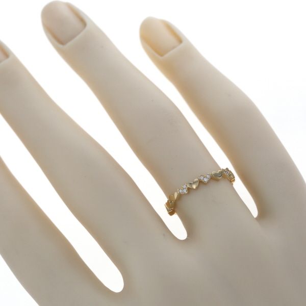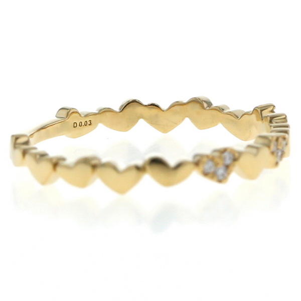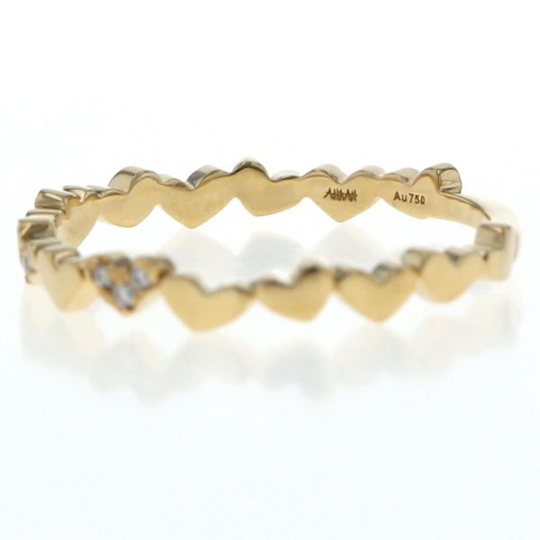 | 商品紹介 | AHKAH 【アーカー】のアンハートパヴェ リングです。 アーカーらしい華奢で繊細なデザインが魅力の現行品ジュエリーです。 イエローゴールドの細身のリングに、愛らしいハートモチーフが連なるようにデザインされています。 連なるハートの一部には、きらめくダイヤモンドが繊細にパヴェセッティングされており、控えめながらも確かな輝きを放ちます。 指を優しく包み込むようなデザインは、単体でつけても可愛らしく、他のリングと重ね付けすることでより華やかな印象を与えます。 甘すぎないハートモチーフが、お手元に女性らしさとモダンな雰囲気をプラスする、長く愛用できるジュエリーです。 |