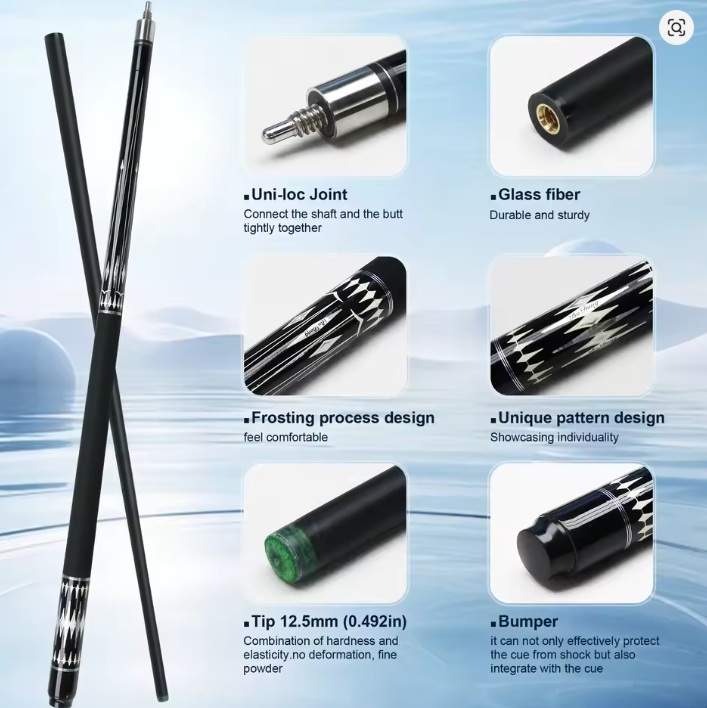 高品質のカーボンファイバーキューで作られており、12.5mmチップを備え、正確なショットを実現します。