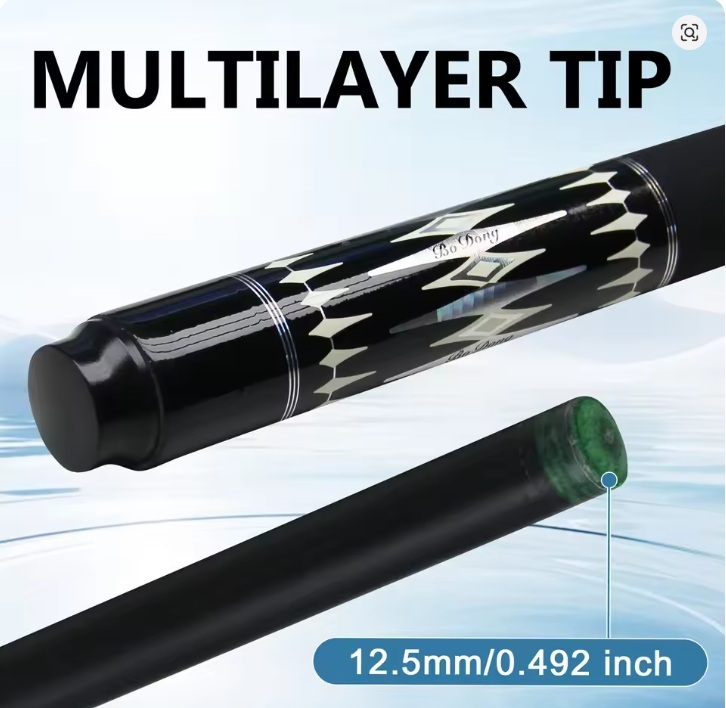 12.5mmチップのカーボンファイバーキューは、正確なショットを実現します。