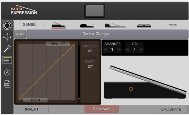 • 専用コントロールアプリケーション(Windows/macOS/Linux/iOS対応)により、ペダルの「反応曲線(カーブ)」「モード切替(例:CCモード/ノートモード)」「入力感度」「スナップショット保存」など細かく設定可能。