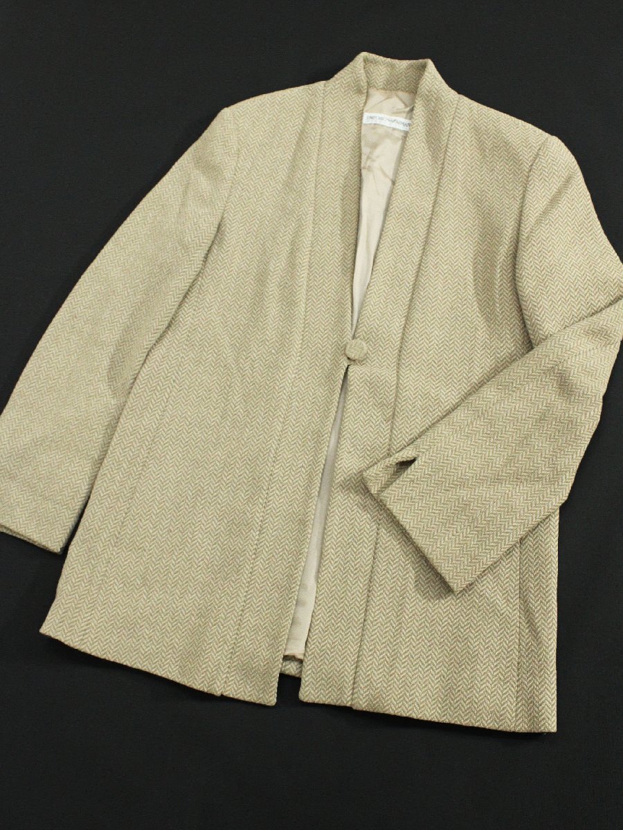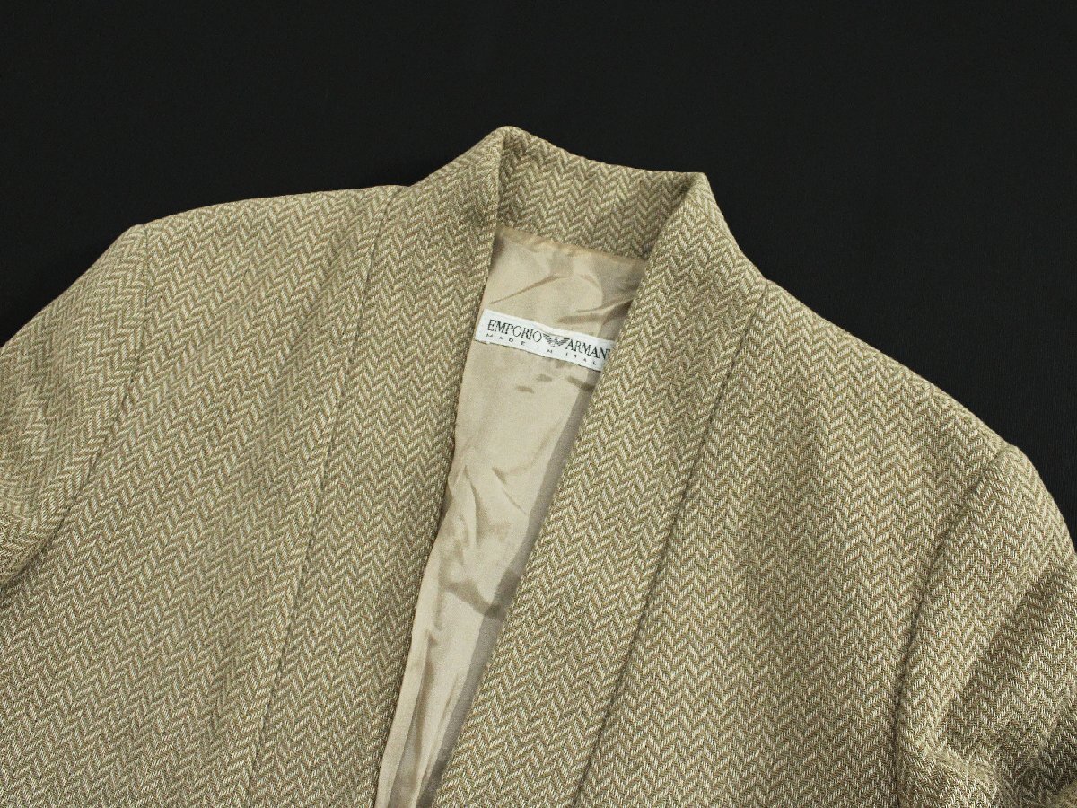 国内正規品美品 エンポリオアルマーニ ウールヘリンボーン柄長袖ジャケット 茶 rm050