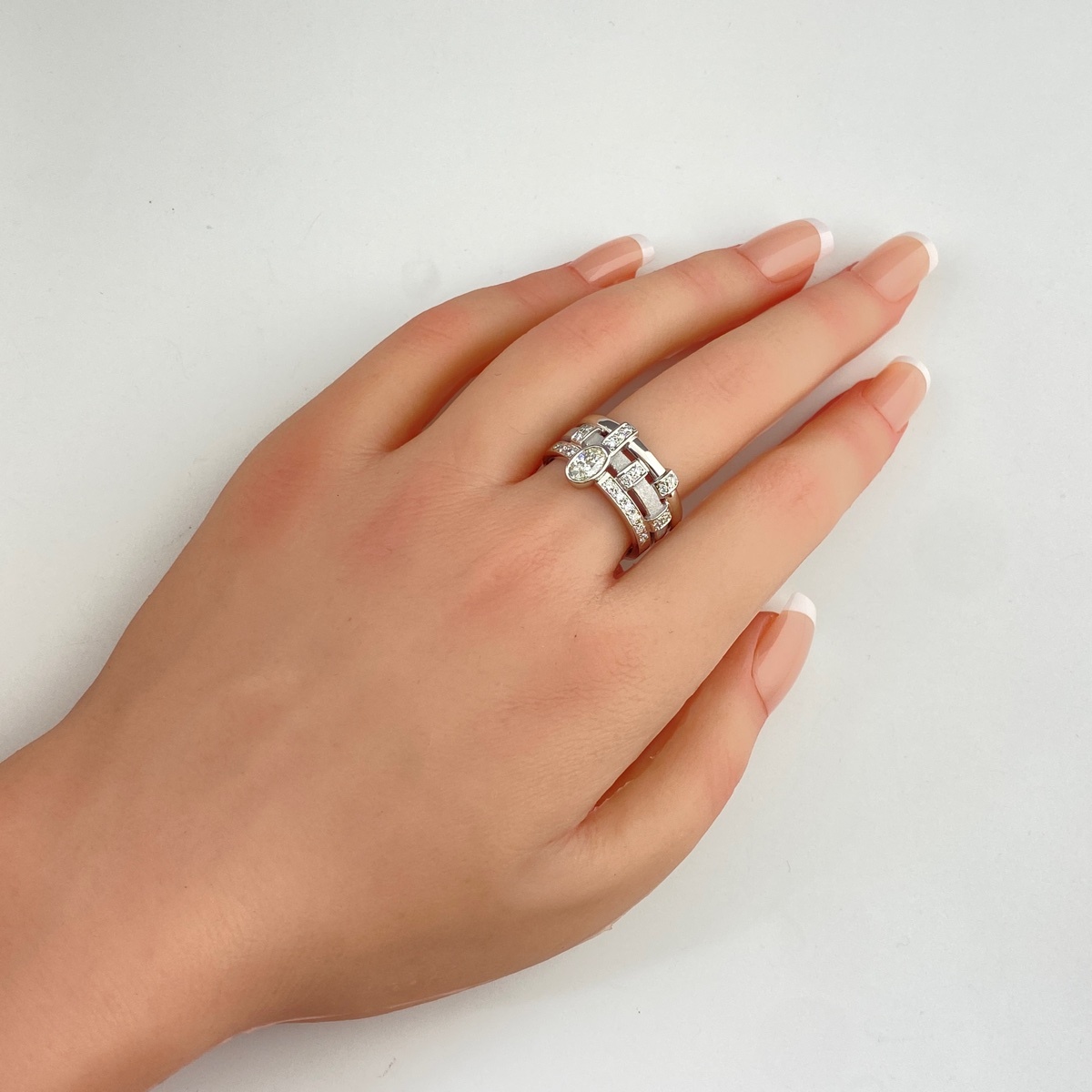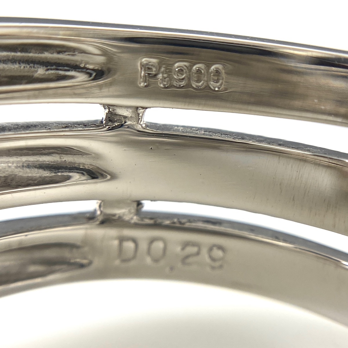 実寸サイズ| 約18号 | リング最大幅 | 約13.5mm | リング最小幅 | 約8.9mm | リング厚さ | 約3.7mm | 素材 | Pt900、ダイヤモンド | コメント | ダイヤモンド:0.507ct、メレダイヤ:0.29ct | 中古品の為、若干のキズや汚れがございます。 付属品 | なし | |