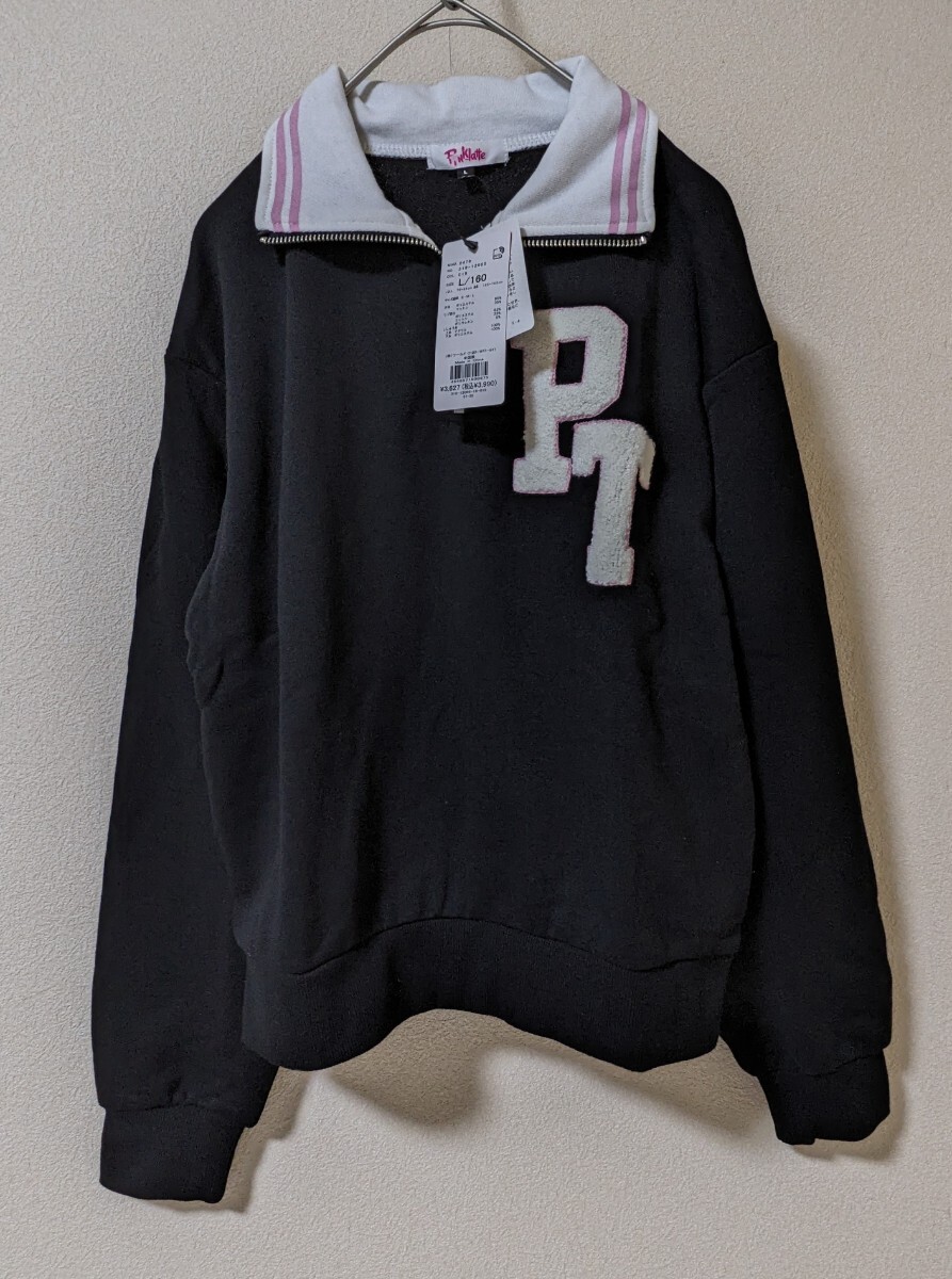 胸元の可愛いさがら刺繍がアクセントになったハーフジップトレーナー。