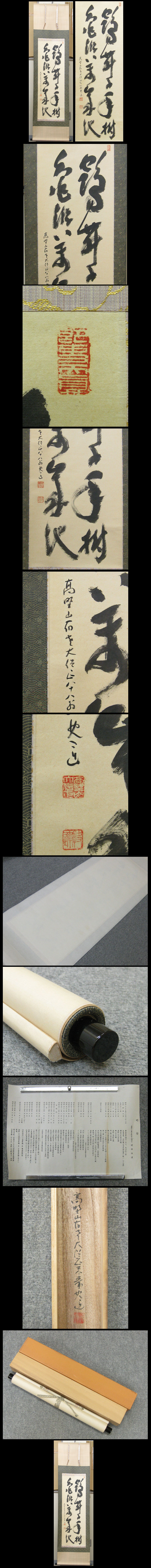 | 【建部快運】 明治30年 愛知県に生まれる 大正13年 高野山大学卒業 大正14年 浜松鴨江寺住職 昭和8年 高野山南院住職 昭和11年 再鴨江寺住職 昭和27年 浜松市仏教会会長 昭和43年 高野山大僧正 昭和53年 高野山宿老 昭和57年 曼荼羅集発刊 昭和63年 3月23日遷化 ★商品サイズ★ ■掛軸 185×48.5cm ■作品 105×36cm ★商品の状態★ 良い状態です。 時代など詳しくは画像にてよく確認のうえでご検討いただければと思います。 どうぞよろしくお願いいたします。 |