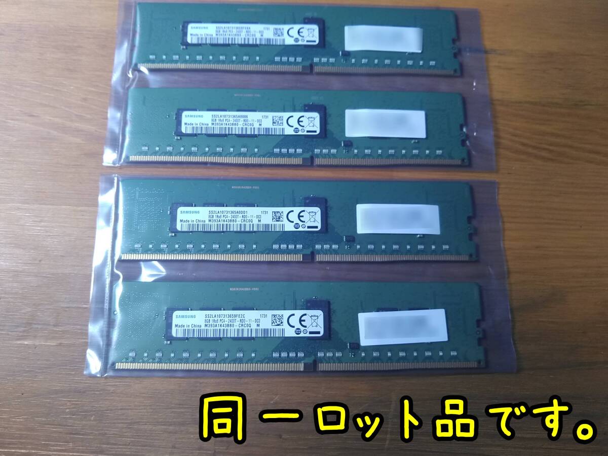 | モデル名:M393A1K43BB0-CRC - Samsung 8GB DDR4-2400 RDIMM PC4-19200T-R Single Rank x8 Module 製造元: Samsung メモリタイプ: DDR4 SDRAM 容量: 8GB * 4枚組 転送速度: 2400MHz ピン数: 288 Pin バスタイプ: PC4-19200T-R エラー訂正: Registered ECC 電圧: 1.2 システムリプレースに伴う既設機器からの取り外し中古品になります。 取り外し時点まで正常に動作しておりましたが、念のため梱包前に再度[DELL Precision Tower 5810 Workstation]にて動作確認を済ませております。 商品画像の通り、 [Memtest86でエラー無し] [Winで認識] を確認しております。 画像は全て実物です。 全て同一ロット(製造年月)品です。 Registeredメモリのため他タイプのメモリとの混在や一般的なPC等では動作いたしません。 Registeredメモリであることをご認識頂いたうえで、ご入札ください。 詳細はメーカーHP、データシート等でご確認ください。 | |