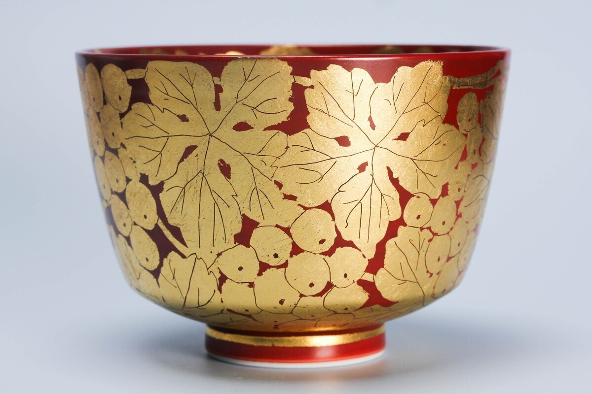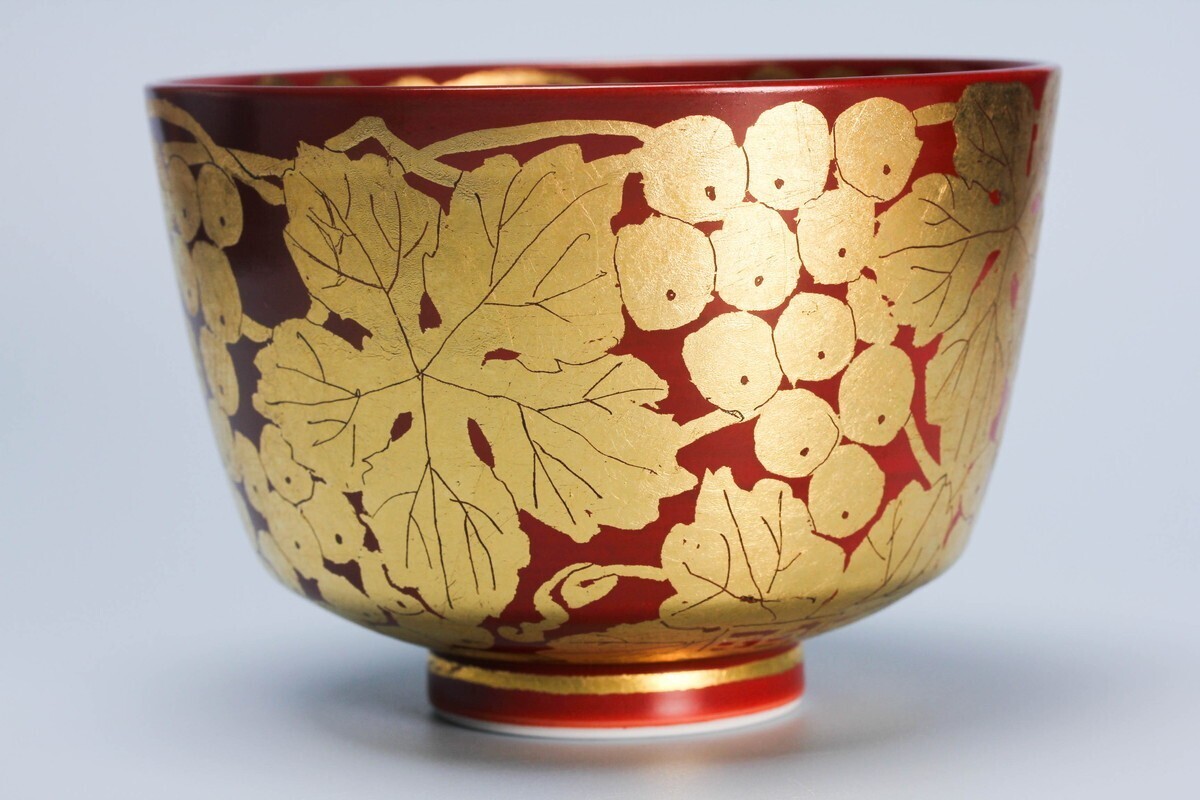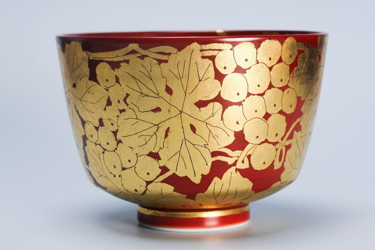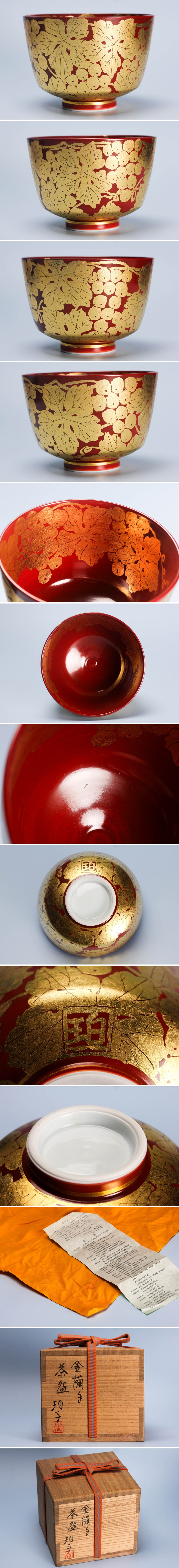 小野珀子 金襴手葡萄文茶碗 共箱 共布 栞 茶道具 本物保証