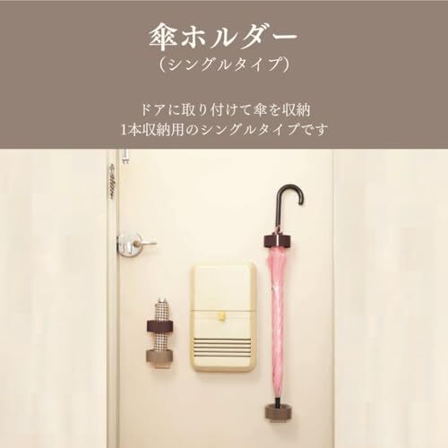 伊勢藤(ISETO) 傘立て 傘ホルダー(シングルタイプ) ブラウン (上部)幅10.0×奥行10.2×高さ4.0cm (下部)幅10.0×奥行10.2×高さ7.3cm 日本製 マグネット付 長さ調節可能 傘 収納 玄関 シンプル おしゃれ 雨 大雨 梅雨 I-482