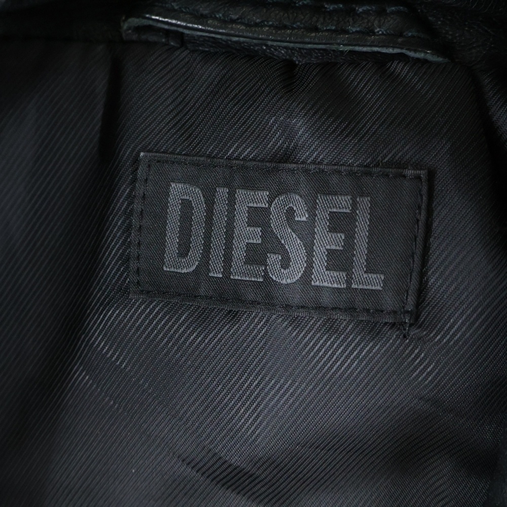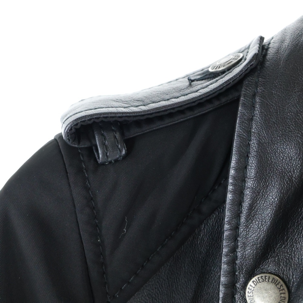 DIESEL ディーゼル ナイロン切り替え ジップアップ ダブル レザージャケット ブラック 00E8F200