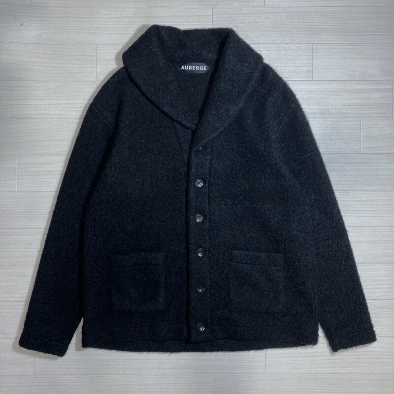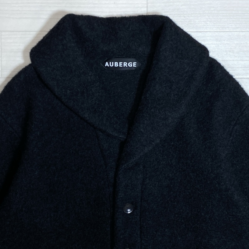 AUBERGE/オーベルジュ/COOKE/クック/ショールカラー カシミヤフリースカーディガン/フロントポケット/ボタンフロント/丸襟/チャコール/42