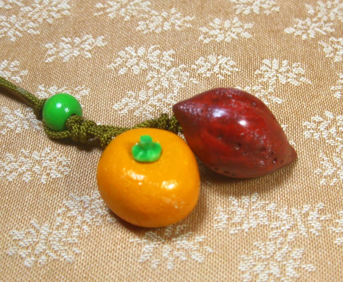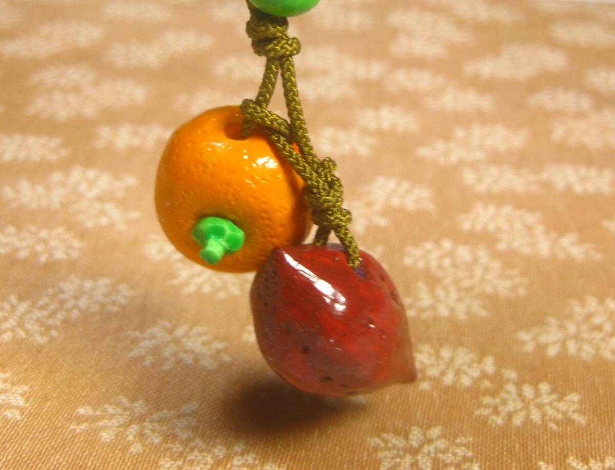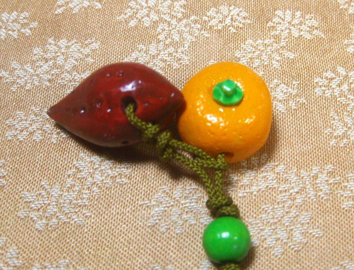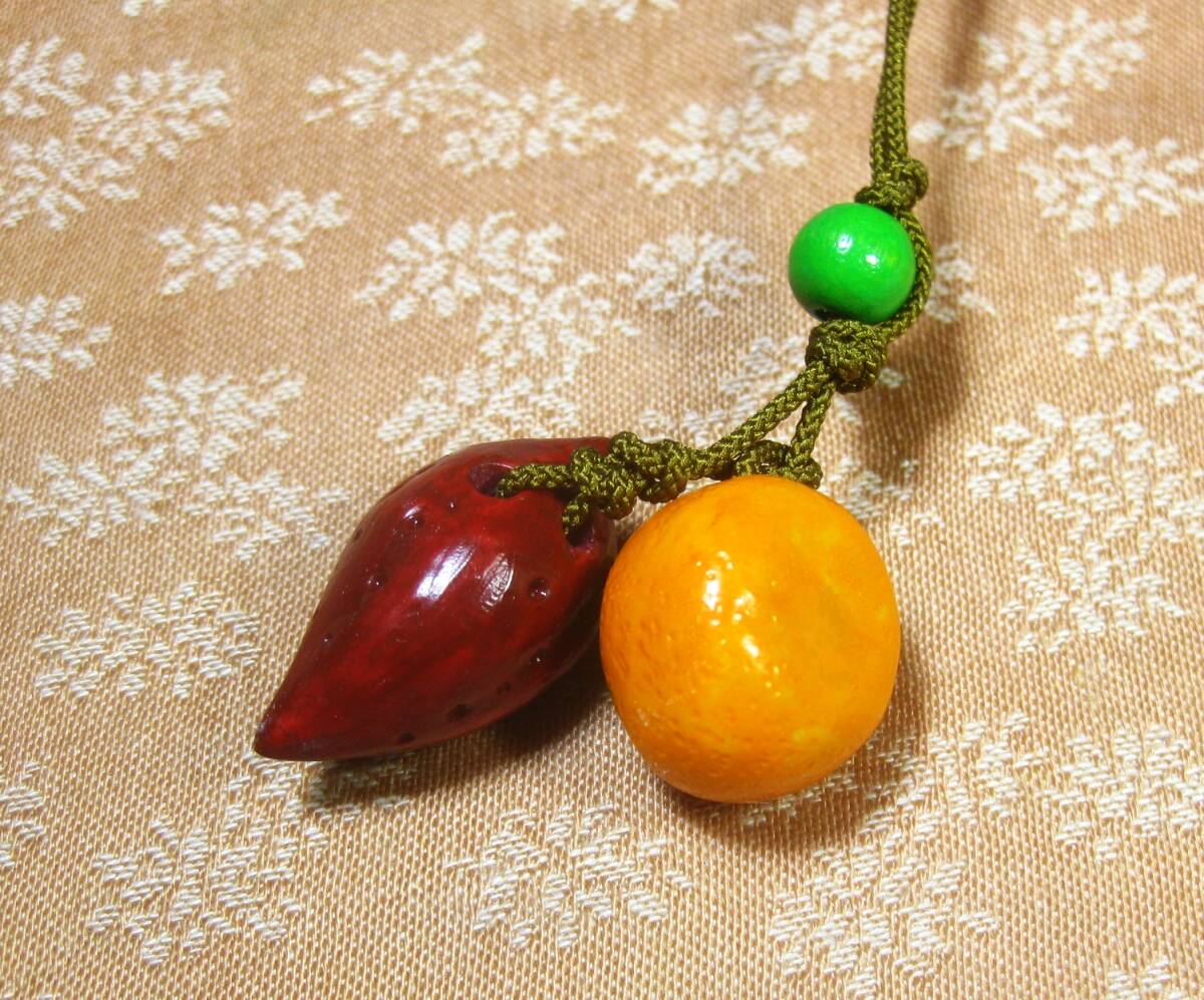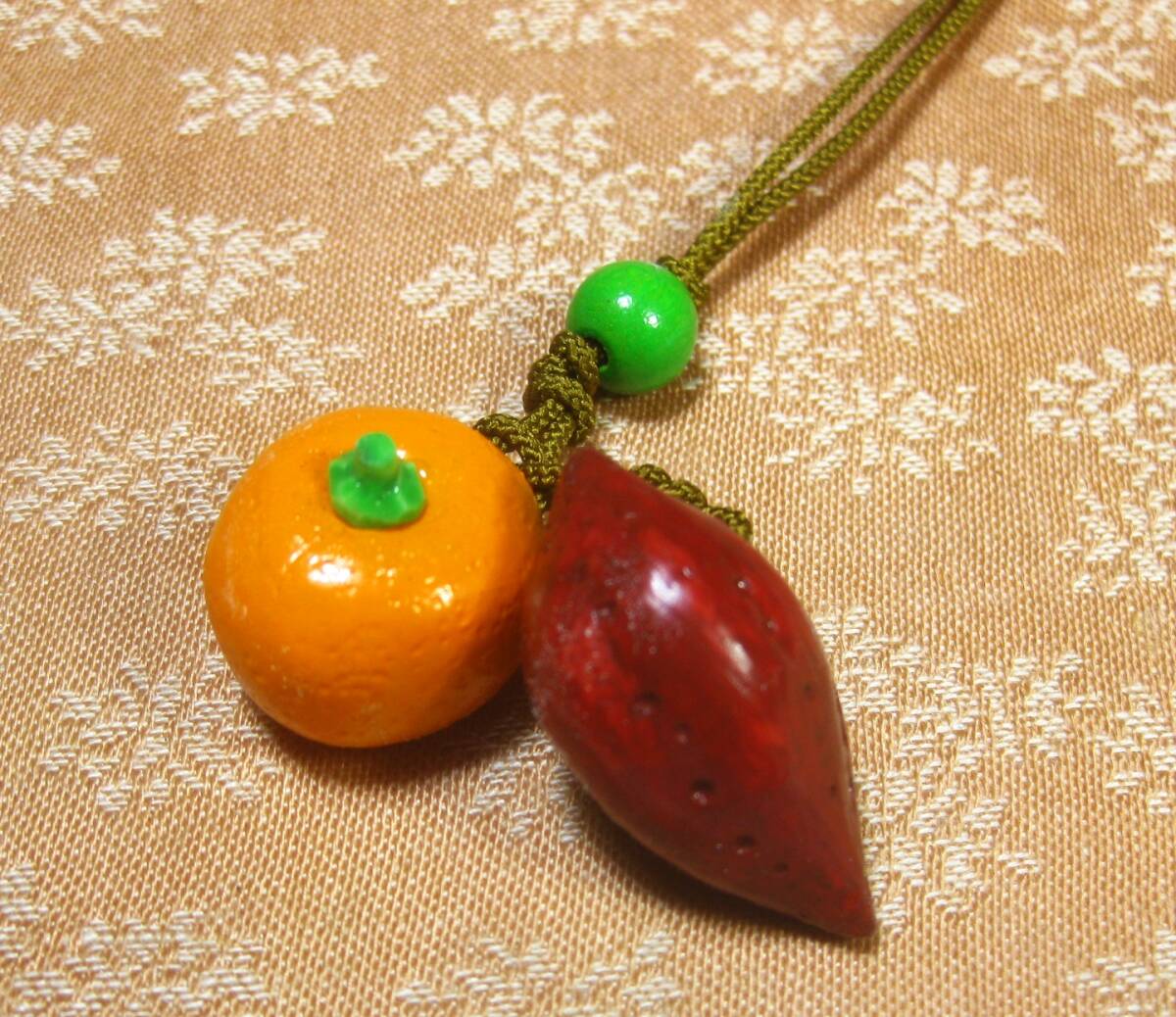 | 秋冬の恵「みかん、サツマイモ」 和装飾り・根付・ストラップ・提げ物 | |