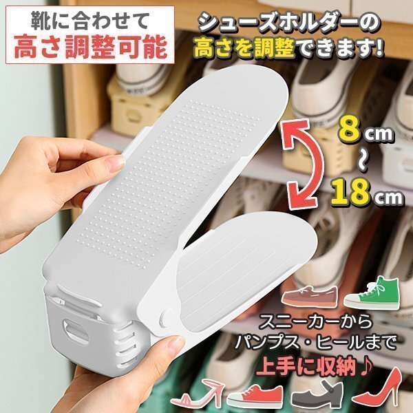 シューズホルダー 靴収納 8足分 スニーカー収納 ホワイト 玄関収納 くつホルダー 靴ホルダー 靴 収納 靴箱整理 靴 靴箱 下駄箱 玄関 スリム