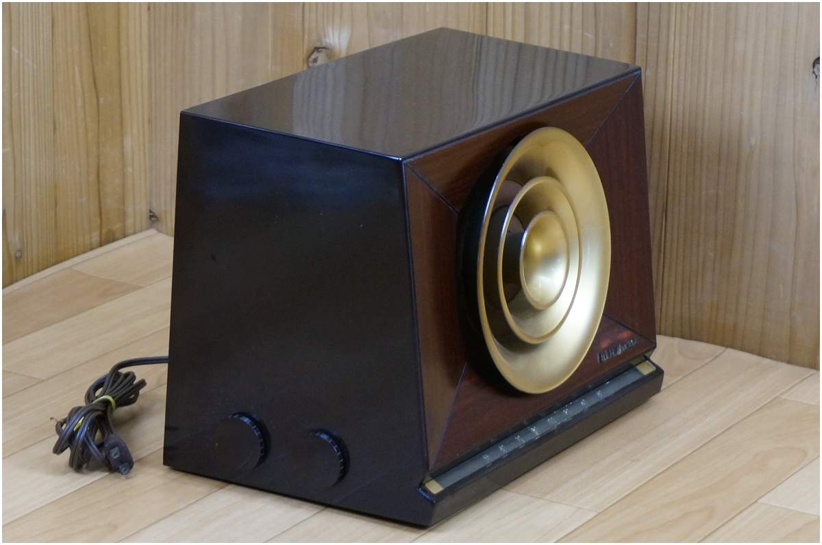 コレクターの方から譲り受けたヴィンテージラジオです。通電・周波数メーター部のランプ点灯・ラジオの受信・周波数切替・音量調整などが出来ることは確認出来ました。コンセントプラグ周りに傷みございます。背面パネルの内側にアンテナが装着されており、設置場所により受信状況は変わるようです。真空管1本は点灯していないように見えます。大変貴重なヴィンテージラジオです。経年の品ですので到着次点において正常動作の保証は致しかねます。現状(保証なし)でのお渡しとさせて頂きます。