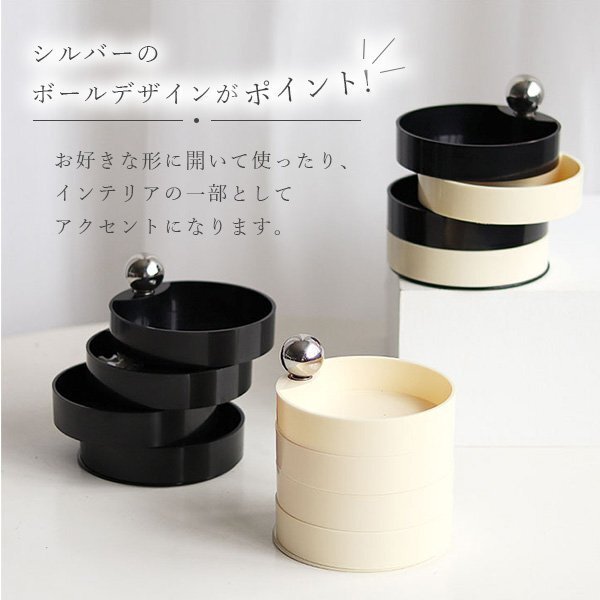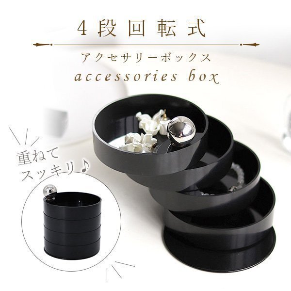 アクセサリーケース 4段 円形 回転 アクセサリートレイ ジュエリーボックス ブラック 小物入れ 北欧 おしゃれ コンパクト 卓上 収納